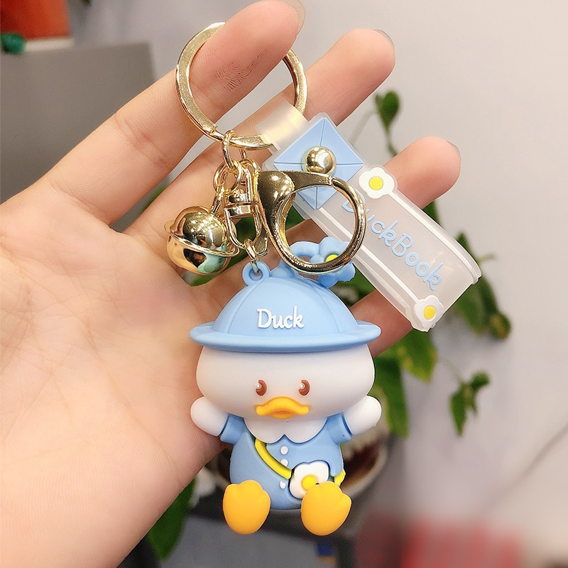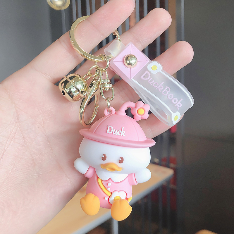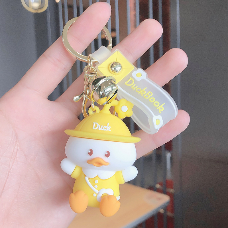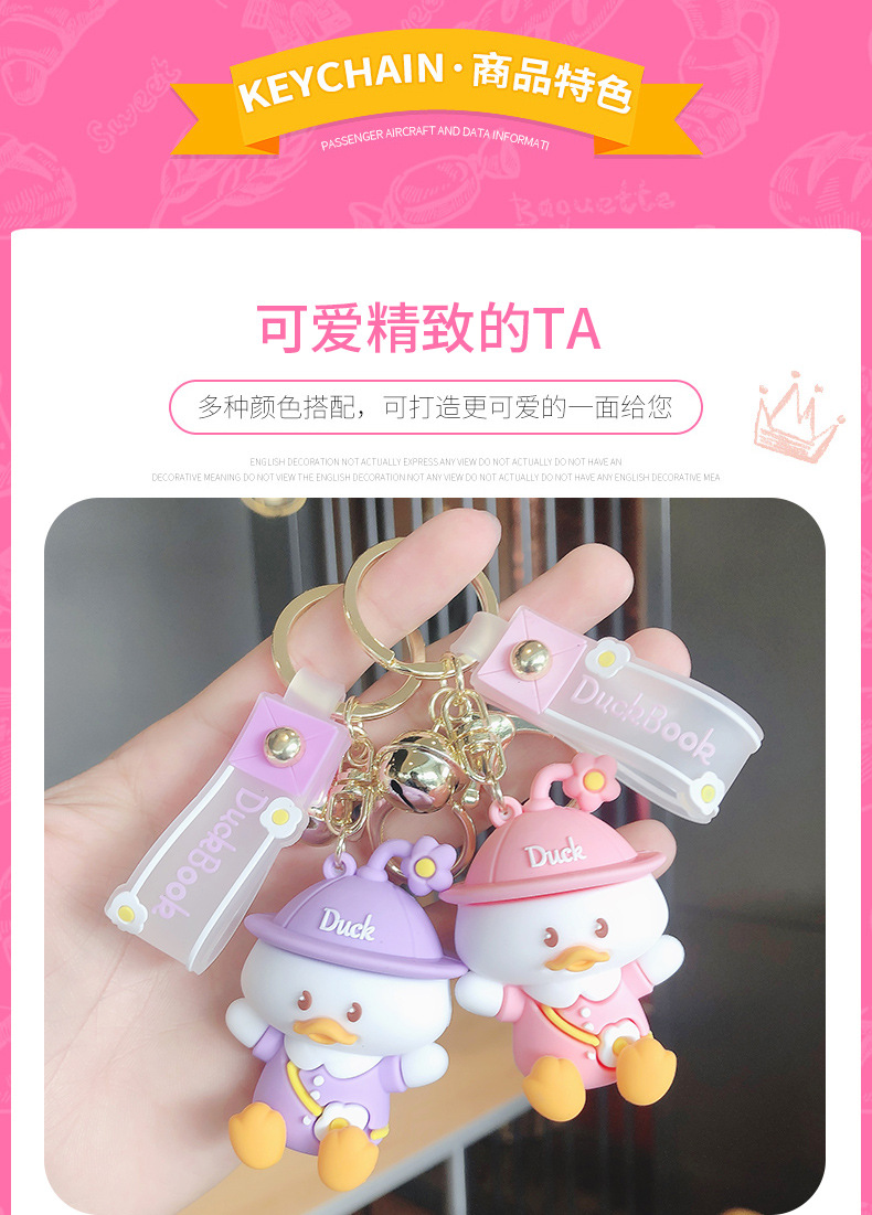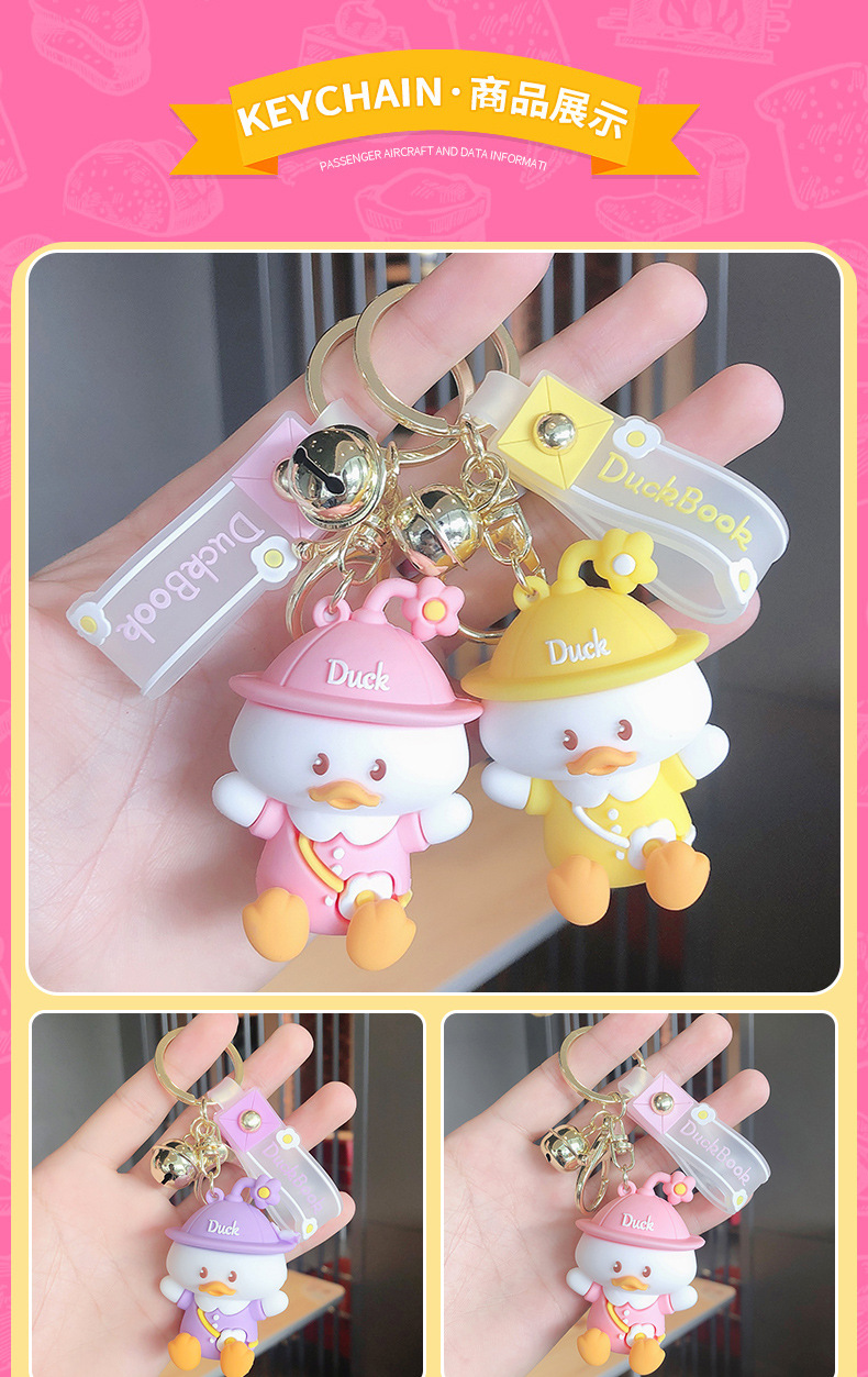 만화 부드러운 귀여운 앉아있는 오리 귀여운 인형 열쇠 고리 펜던트 작은 선물 펜던트 자동차 열쇠 고리 선물 도매스토어 가기