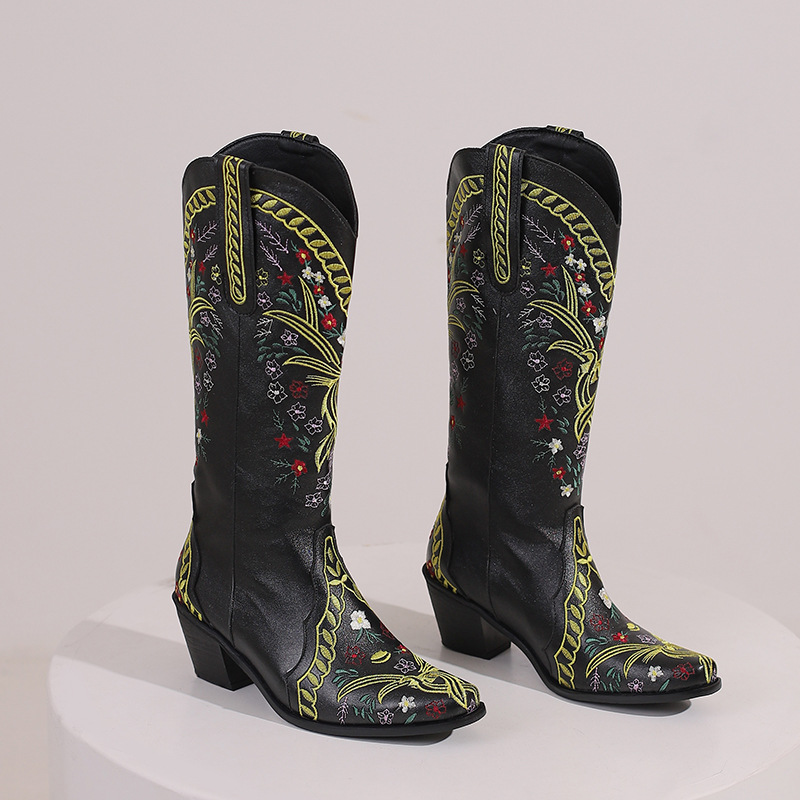 23 가을과 겨울 여성 인쇄 유럽과 미국 여성 가죽 부츠 소매 패션 부츠 하이힐 여성 신발 40-48 해외 무역 부츠
