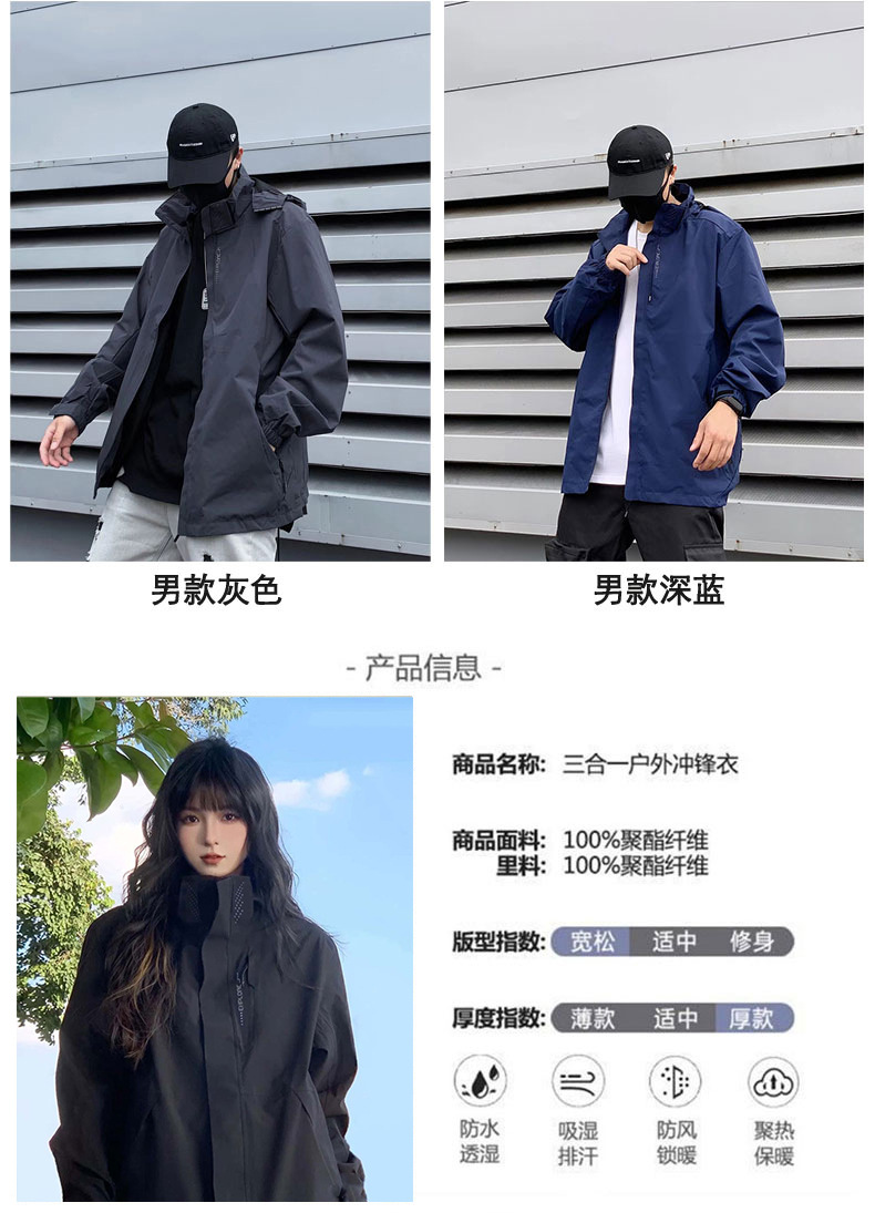 NASA 조인트 재킷 여성용 봄과 가을 방풍 방수 남성 자켓 겨울 쓰리-인-원 분리형