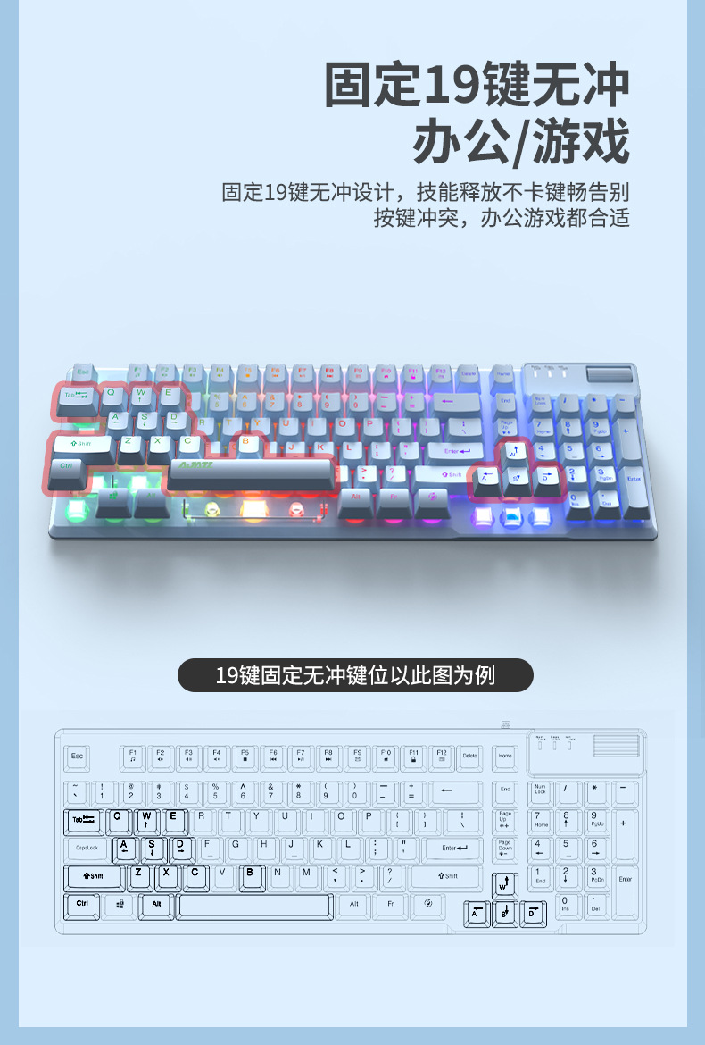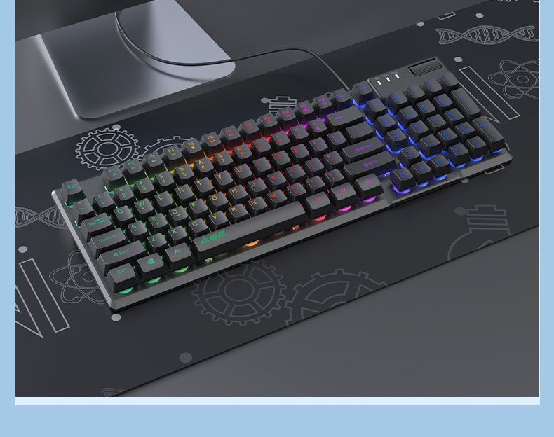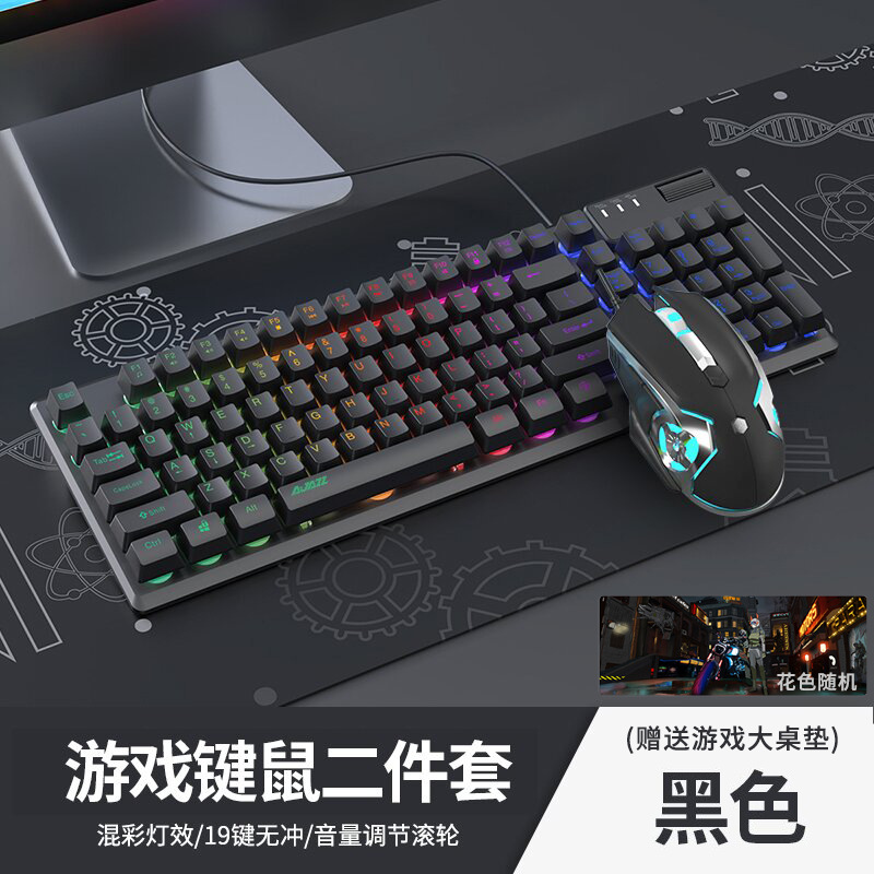 블랙 Jue AF981 키보드 전자 스포츠 게임 유선 노트북 외부 기계 느낌 빛나는 키보드 마우스 세트 타이핑