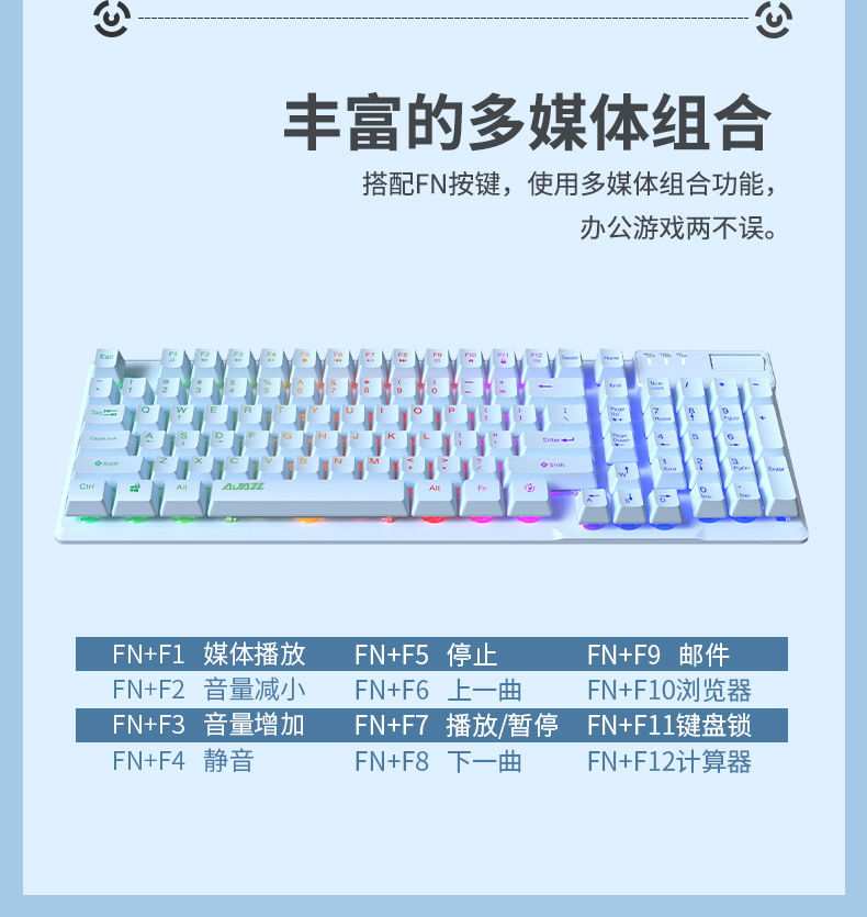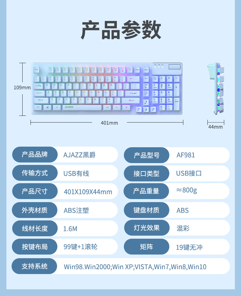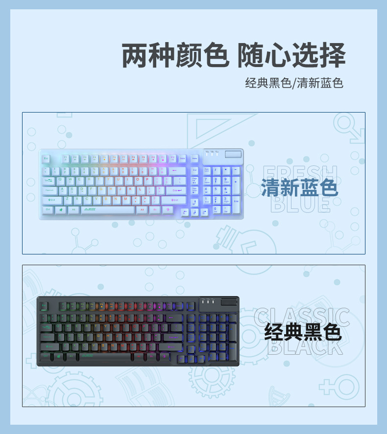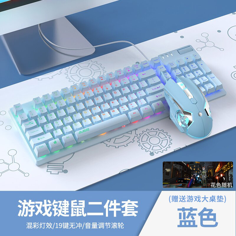 블랙 Jue AF981 키보드 전자 스포츠 게임 유선 노트북 외부 기계 느낌 빛나는 키보드 마우스 세트 타이핑스토어 가기