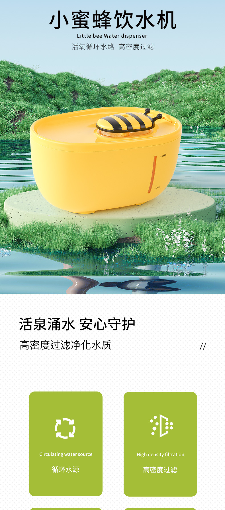 애완 동물 고양이 꿀벌 물 디스펜서 필터 필터 방수 음소거 지능형 물 분지 물 그릇 자동 물 공급 업체스토어 가기