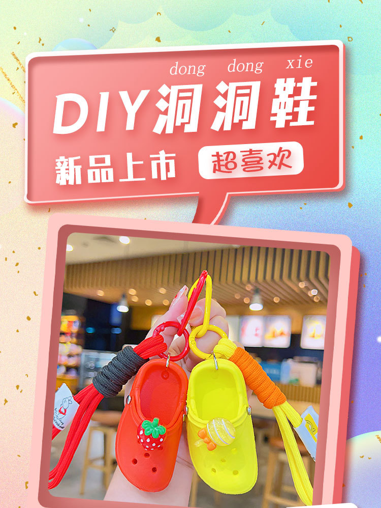 수제 DIY 구멍 신발 창조적 인 장신구 만화 열쇠 고리 액세서리 도매 학교 가방 펜던트 열쇠 고리 선물스토어 가기