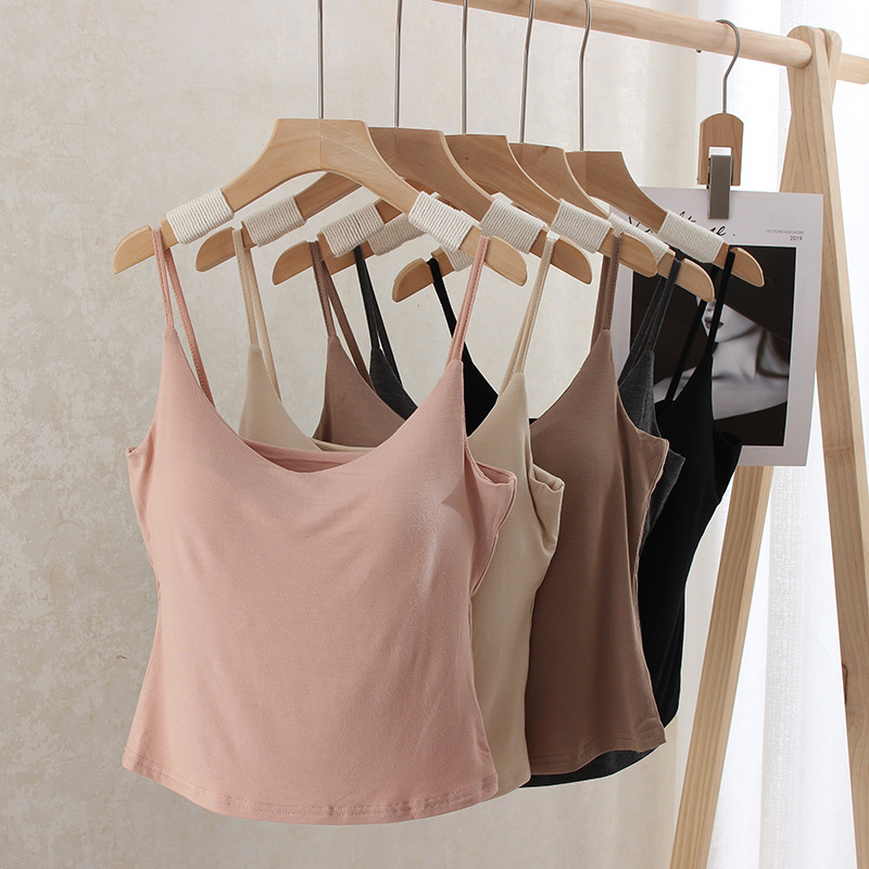 조만간 모달 가슴 패드 가슴 표시 큰 캐미솔베이스 내부 모든 매치 슬림 핏 슬리밍 섹시한 여성의 여름스토어 가기