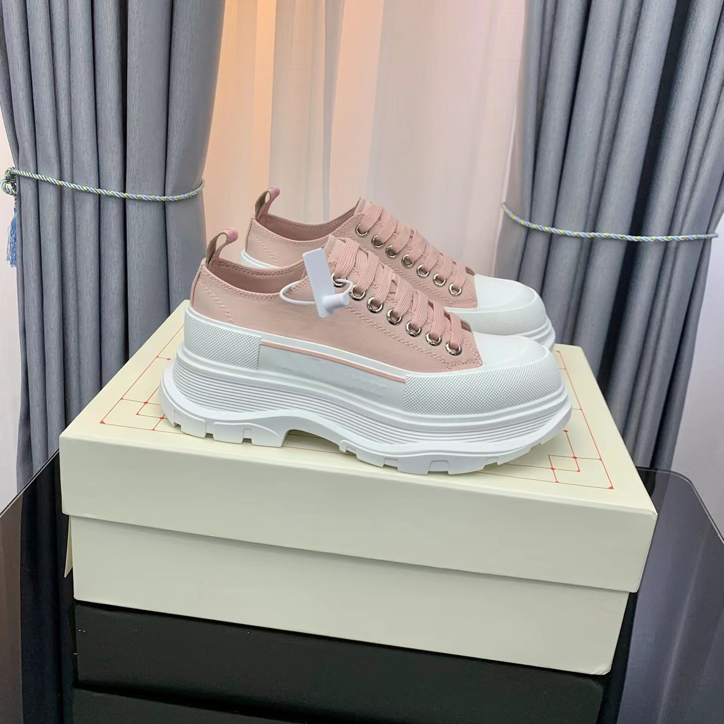 하이 버전 McQueen 캔버스 신발 커플의 두꺼운 단독 흰색 신발 남성용 블랙 모든 매치 증가 가죽 통기성 토레 신발 여성스토어 가기
