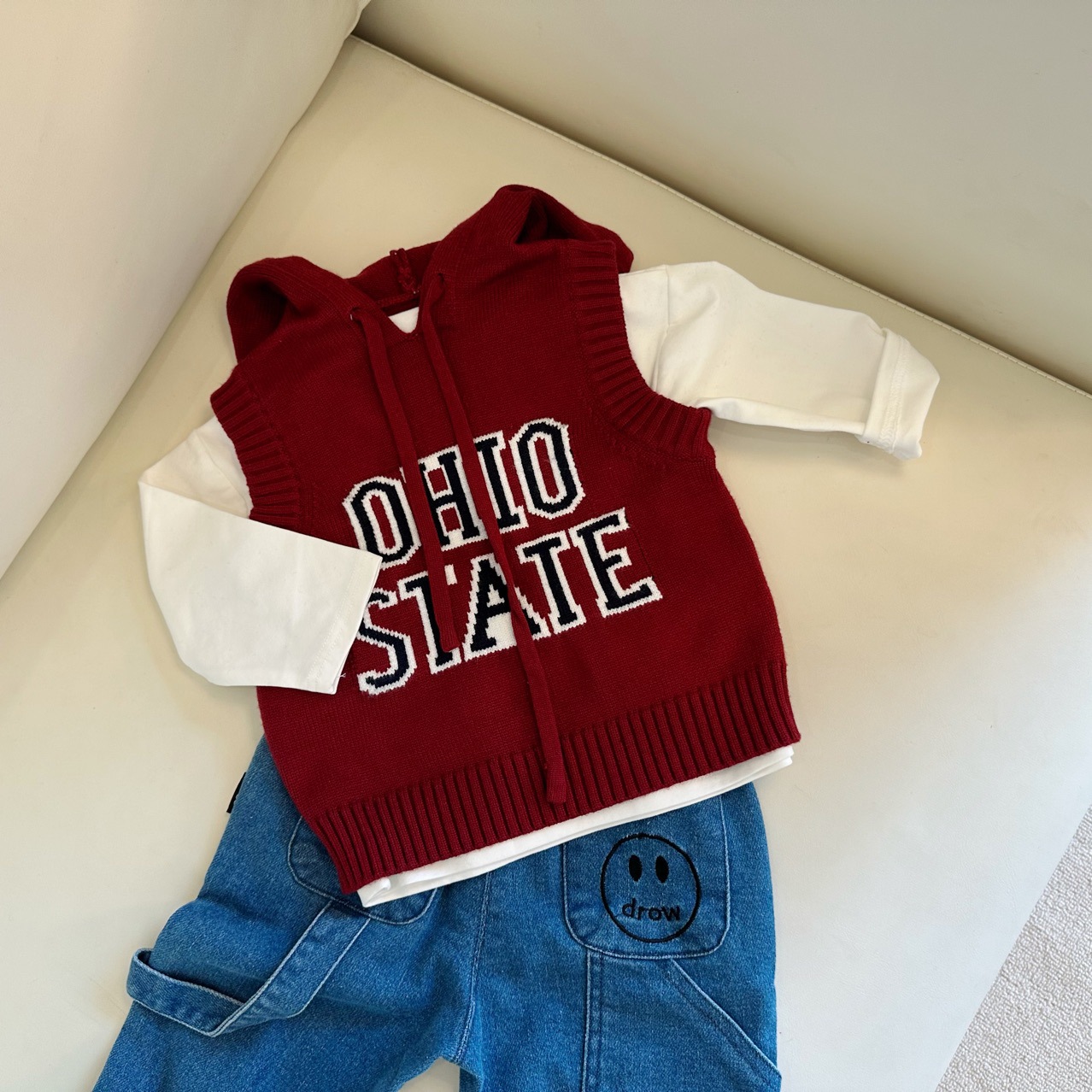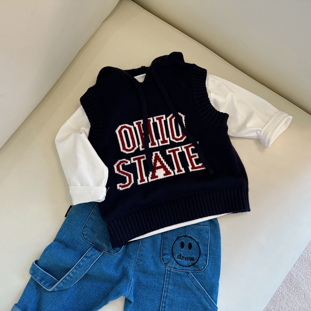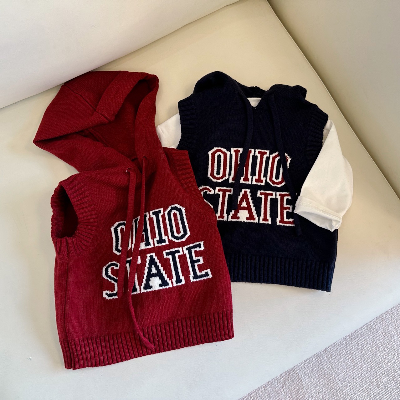 아기 니트웨어 조끼 가을 새로운 소년과 소녀 후드 조끼 아기 한국어 느슨한 편지 조끼스토어 가기