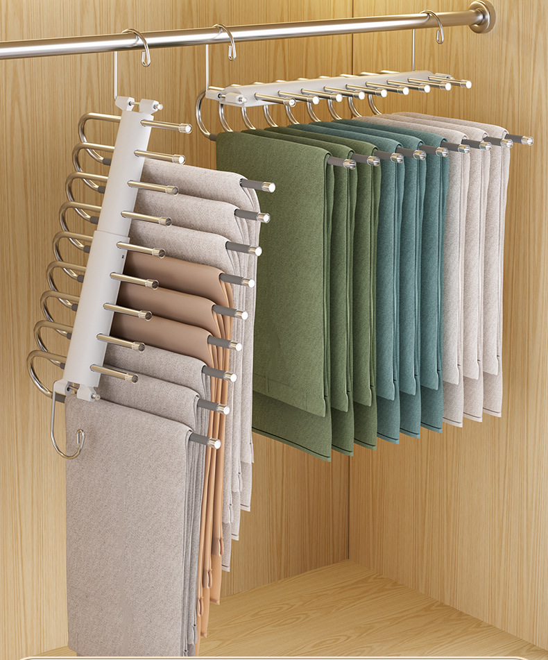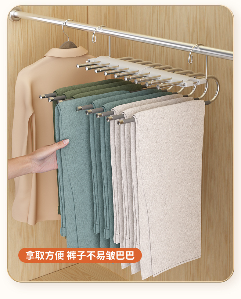 접이식 바지 랙 다기능 다층 바지 걸이 가정용 매직 원활한 바지 클립 옷장 보관 유물 바지 걸이스토어 가기