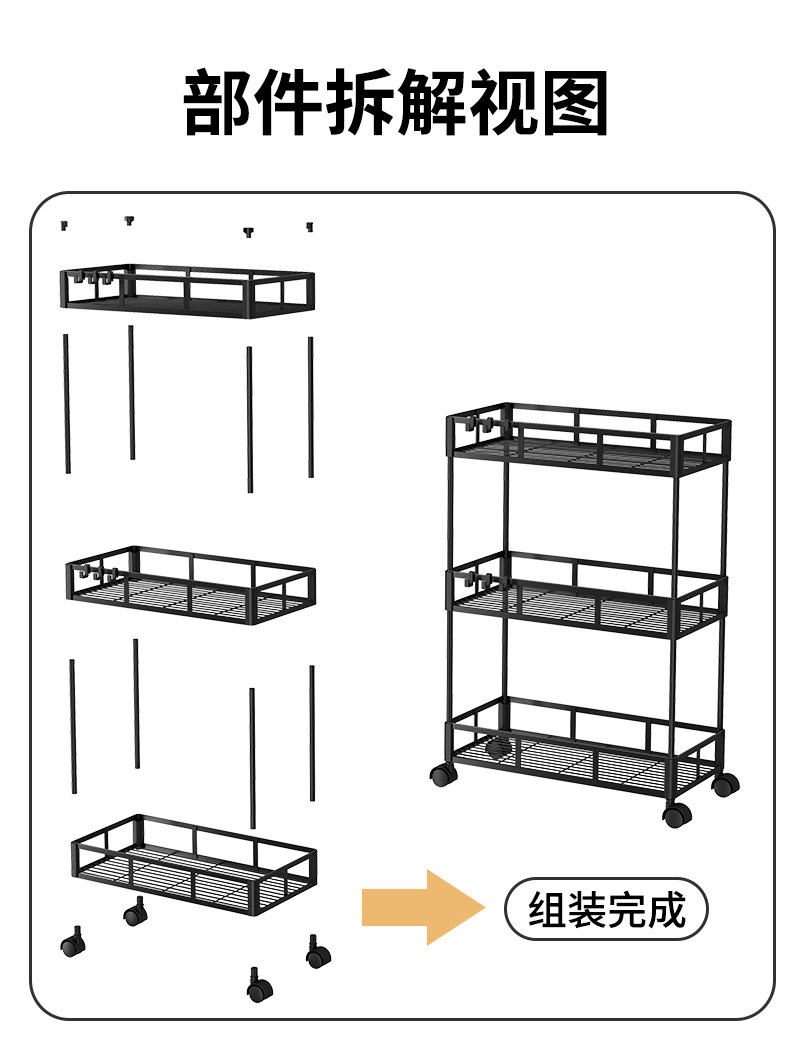 ITEM NO.:4017-4(四层夹缝置物架;落地;带轮)↓