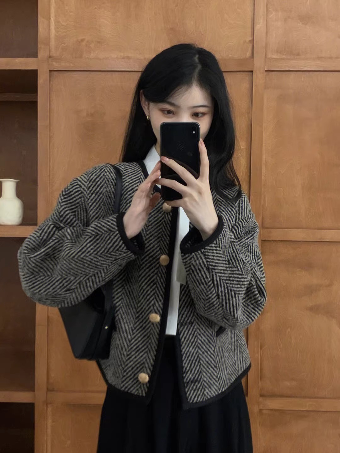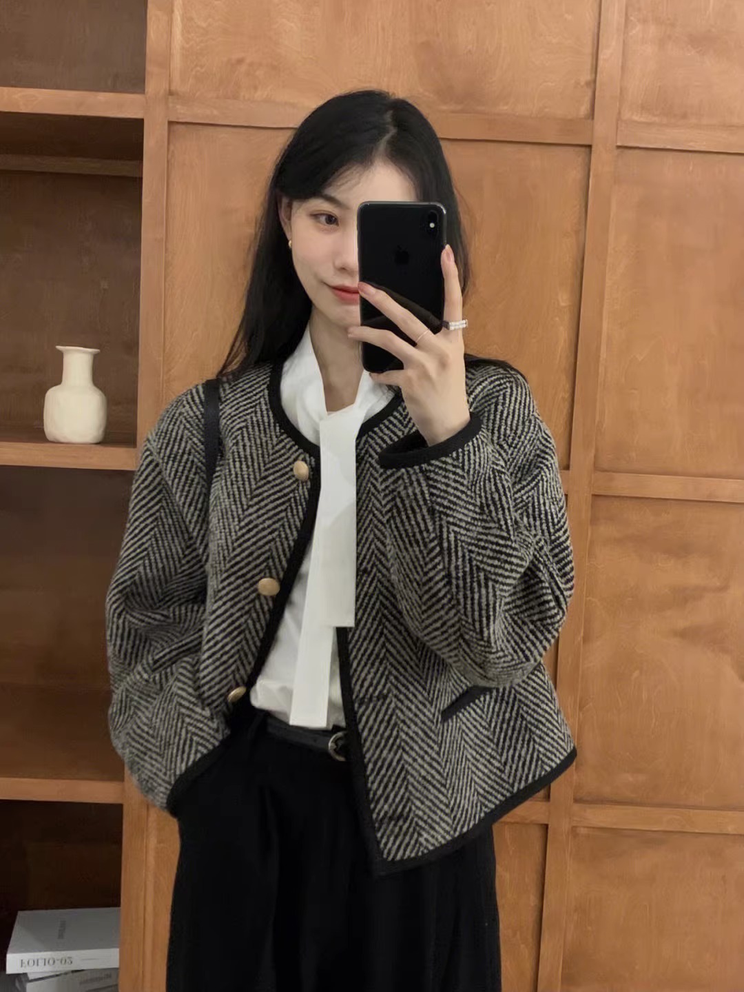 샤넬 스타일 코트 여성의 프랑스 스타일 복고풍 봄과 가을 고급 빈티지 짧은 재킷 카디건 탑 가을과 겨울스토어 가기
