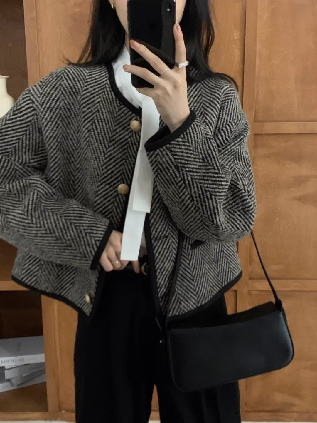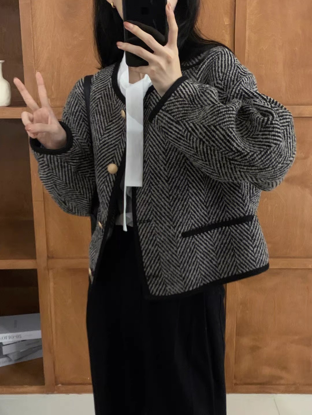 샤넬 스타일 코트 여성의 프랑스 스타일 복고풍 봄과 가을 고급 빈티지 짧은 재킷 카디건 탑 가을과 겨울