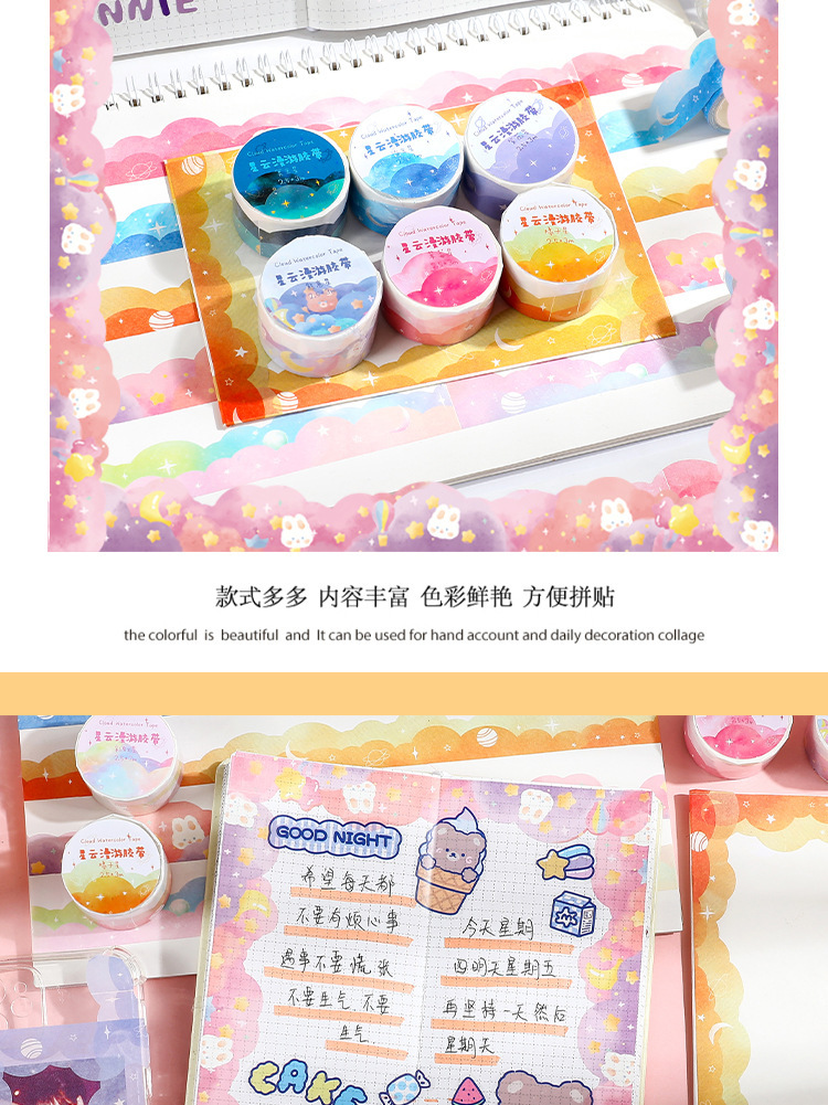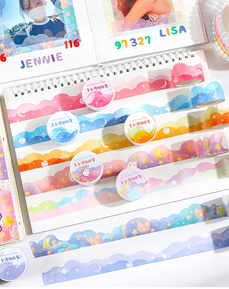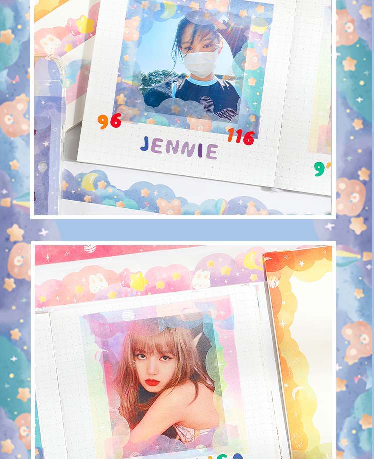 소녀의 귀여운 레이스 모양의 웨이브 테두리 풍경 테이프 성운 로밍 계정 필름 소재 장식 스티커스토어 가기