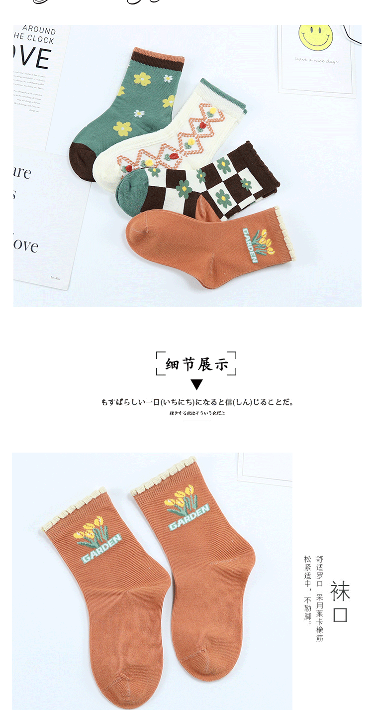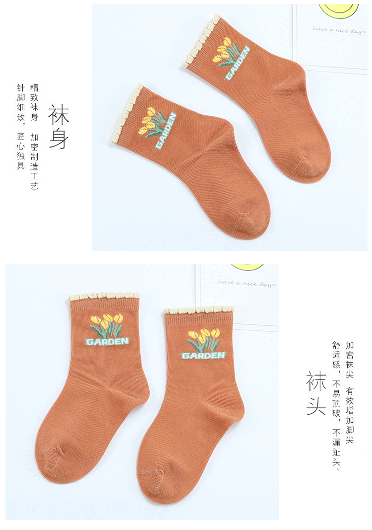 이순신 쌍 어린이 양말 가을과 겨울 새로운 한국 스타일 작은 꽃 중간 길이 양말 뼈없는 어린이 양말 빗질 면 여아 유행 양말