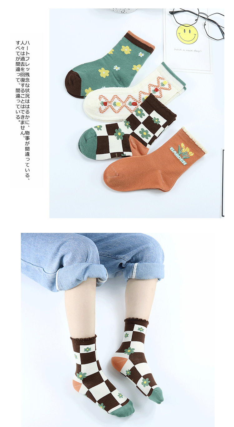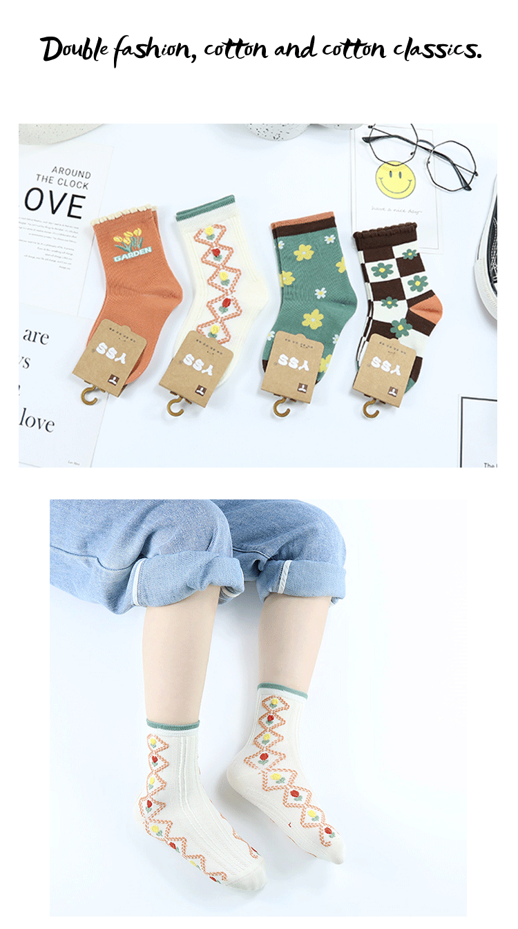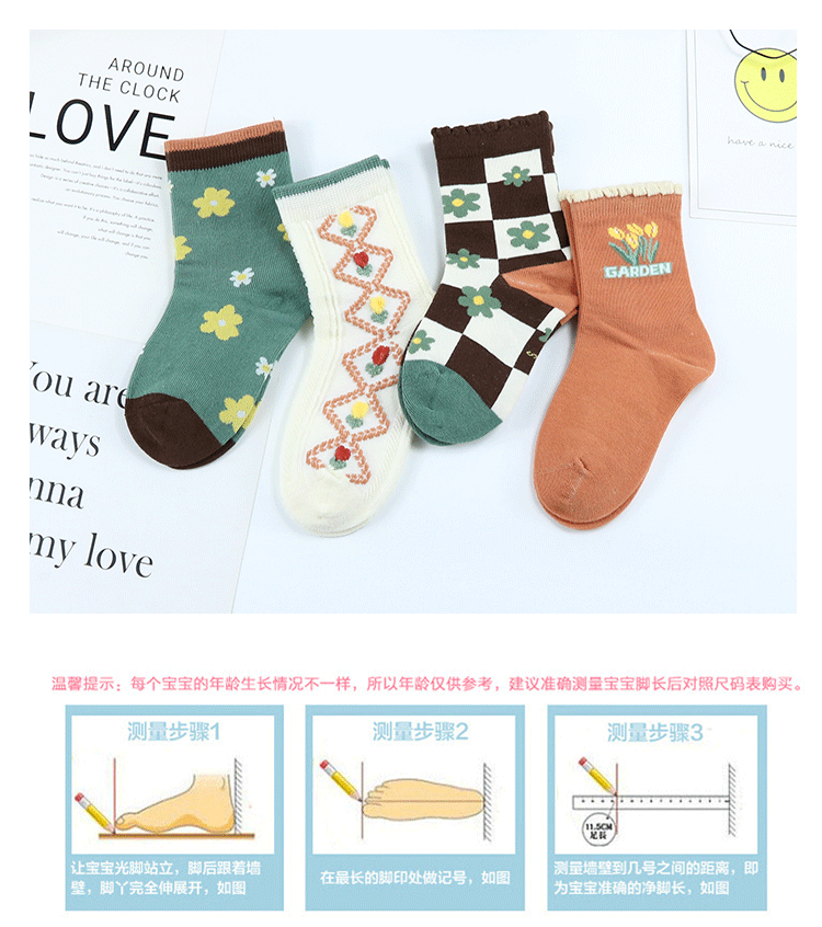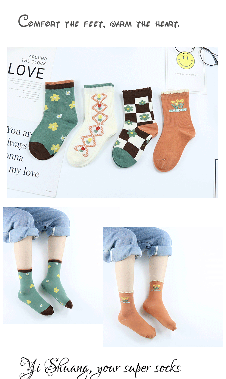이순신 쌍 어린이 양말 가을과 겨울 새로운 한국 스타일 작은 꽃 중간 길이 양말 뼈없는 어린이 양말 빗질 면 여아 유행 양말스토어 가기