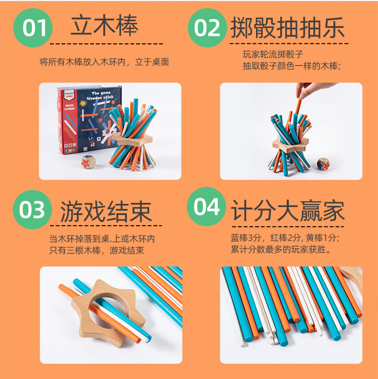 컬러풀한 나무 막대기 게임 스틱 나무로 만든 교육용 균형 막대기 지능 개발 인터랙티브 장난감 cpc ce스토어 가기