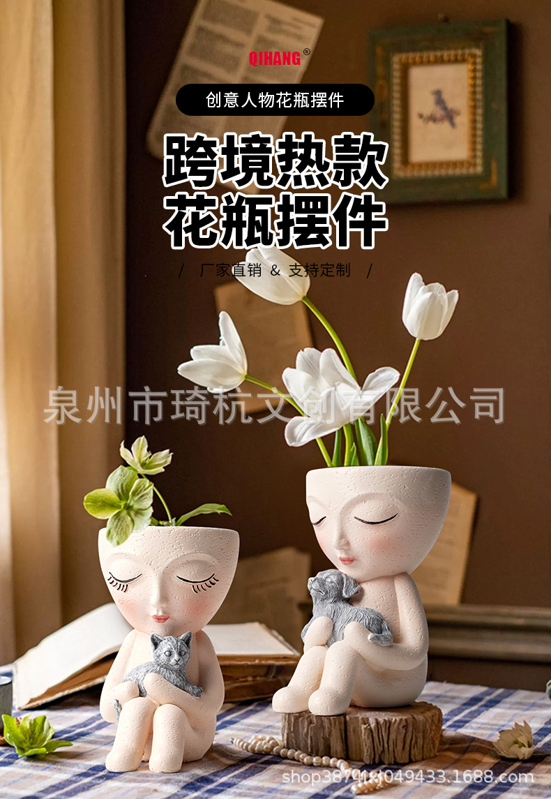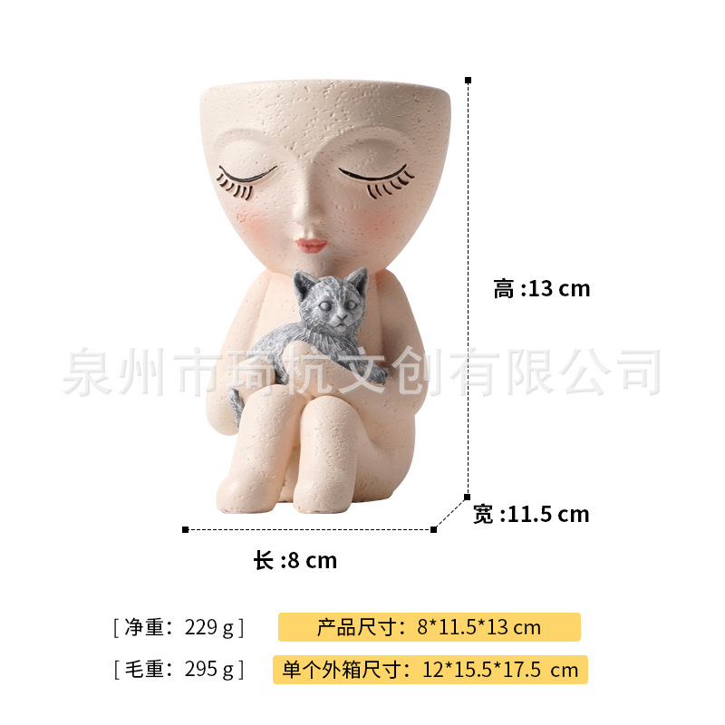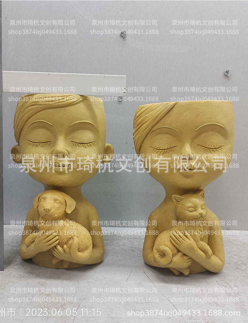 크로스 국경 신제품 앉아있는 자세 소녀 개를 들고 고양이 꽃병 수지 장식품 창조적 인 다육 질 화분 야외 정원 장식스토어 가기