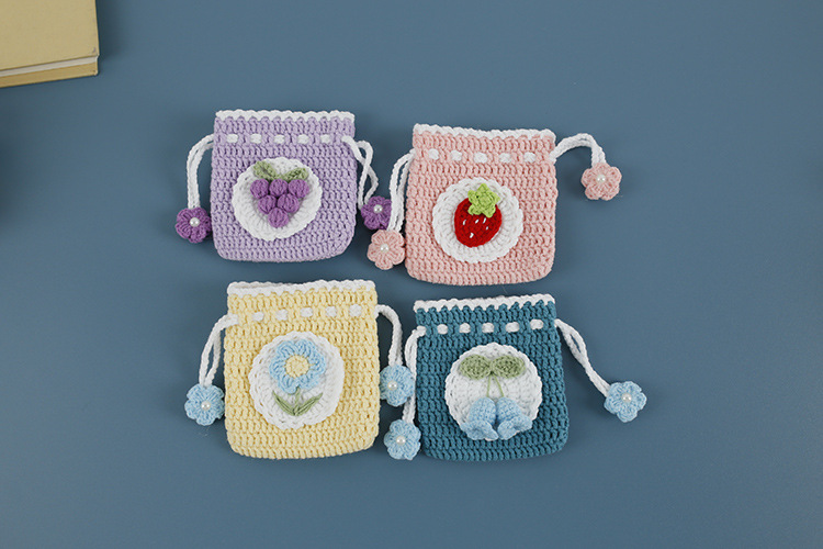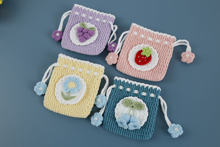 달콤한 손 니트 코르셋 동전 지갑 위버 울 뜨개질 과일 시리즈 작은 포켓 핸드 후크 완제품스토어 가기