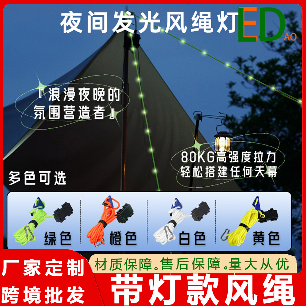 야외 캠핑 야광 윈드 로프 텐트 경고등 캐노피 로프 라이트 윈드 로프 라이트 태양열 충전 자체 발광스토어 가기