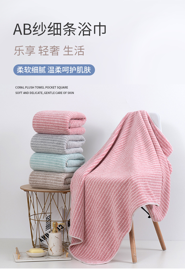 공장 재고 스트라이프 워프 니트 산호 양털 목욕 수건 성인 가정용 소년과 소녀 빠른 흡수 두꺼운 부드러운스토어 가기