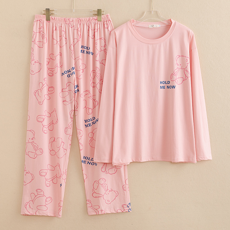 봄과 가을 새로운면 잠옷 여성용 긴팔 바지 만화 캐주얼 홈 옷 느슨한 플러스 사이즈 세트스토어 가기