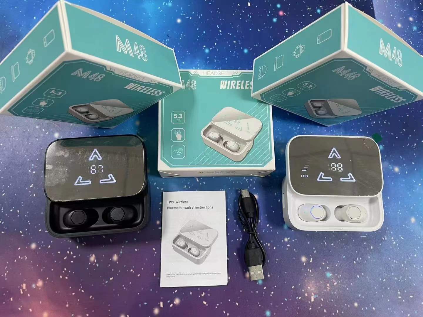 대외 무역 TWS 무선 M48 블루투스 헤드셋 인 이어 스테레오 고품질 제로 지연 대형 전력 소음 감소 헤드셋