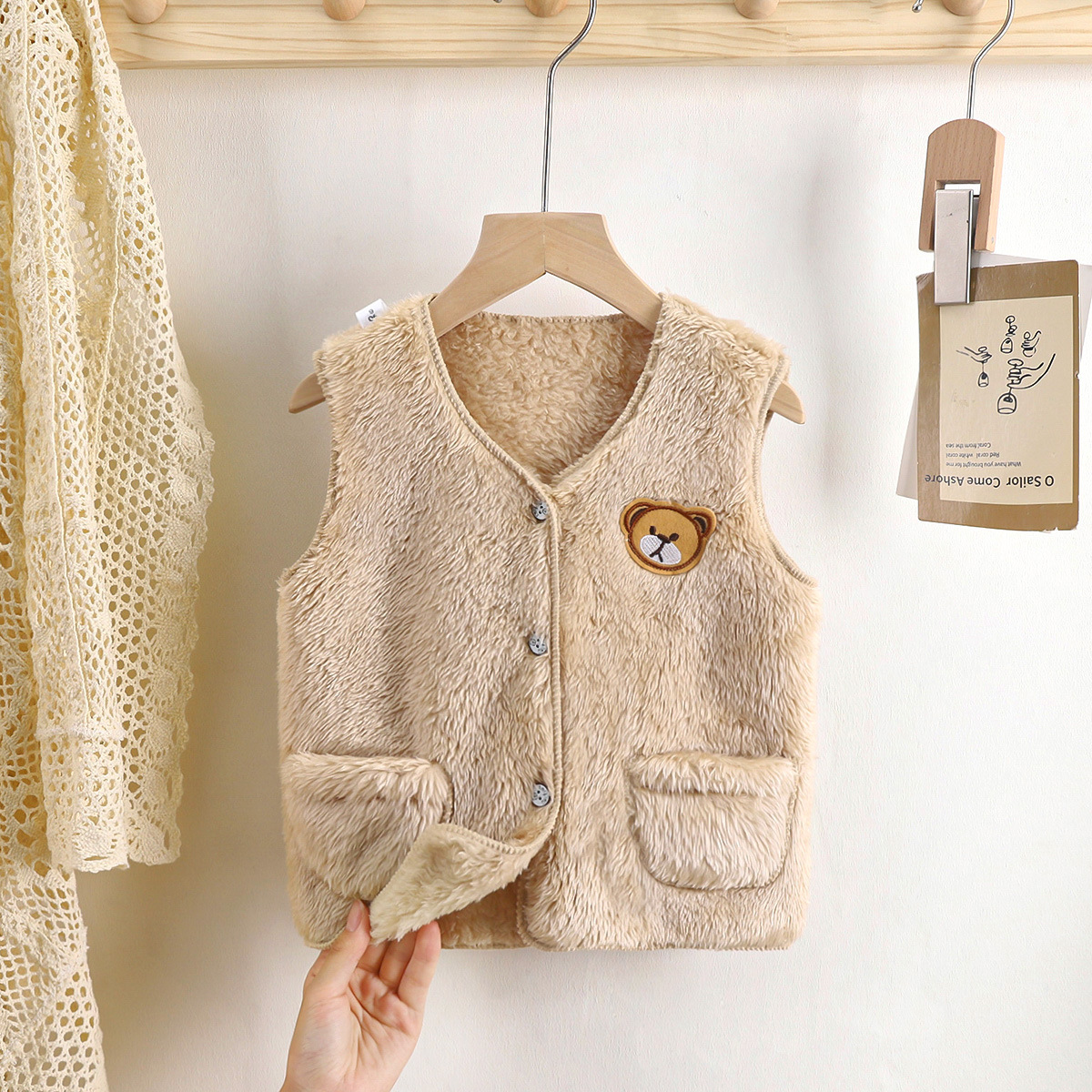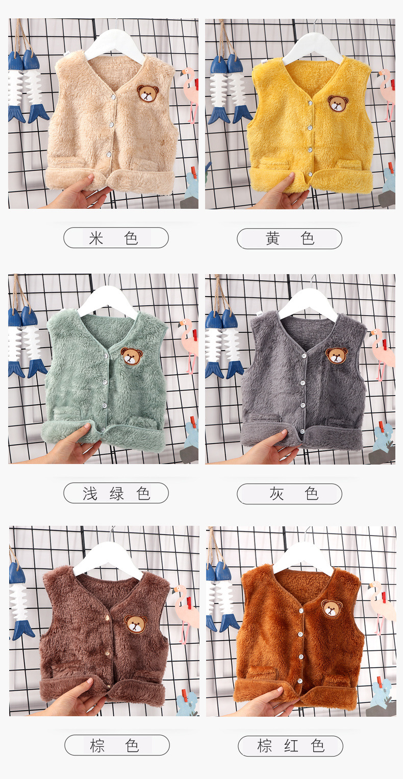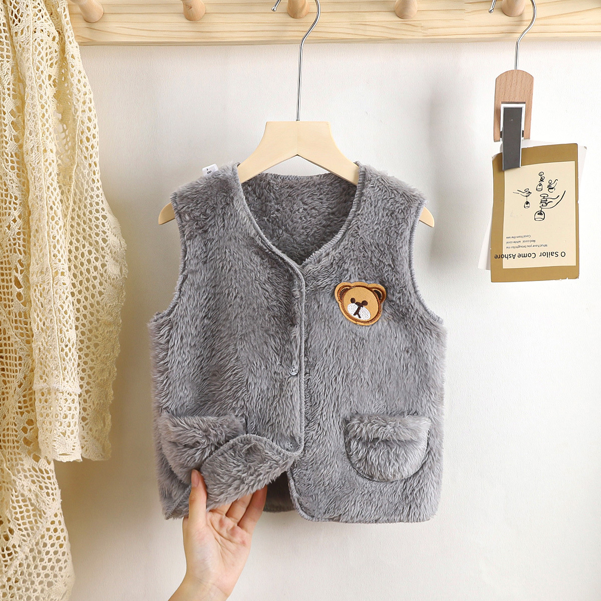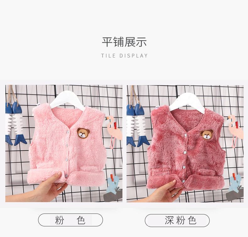 아기 소년과 소녀를위한 아이들의 새로운 조끼 봄과 가을 양면 산호 양털 기모 조끼 플란넬 한국식 따뜻한 양복 조끼
