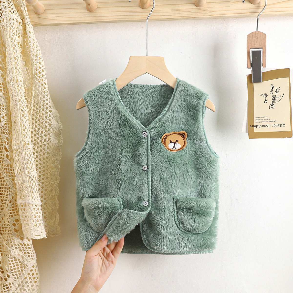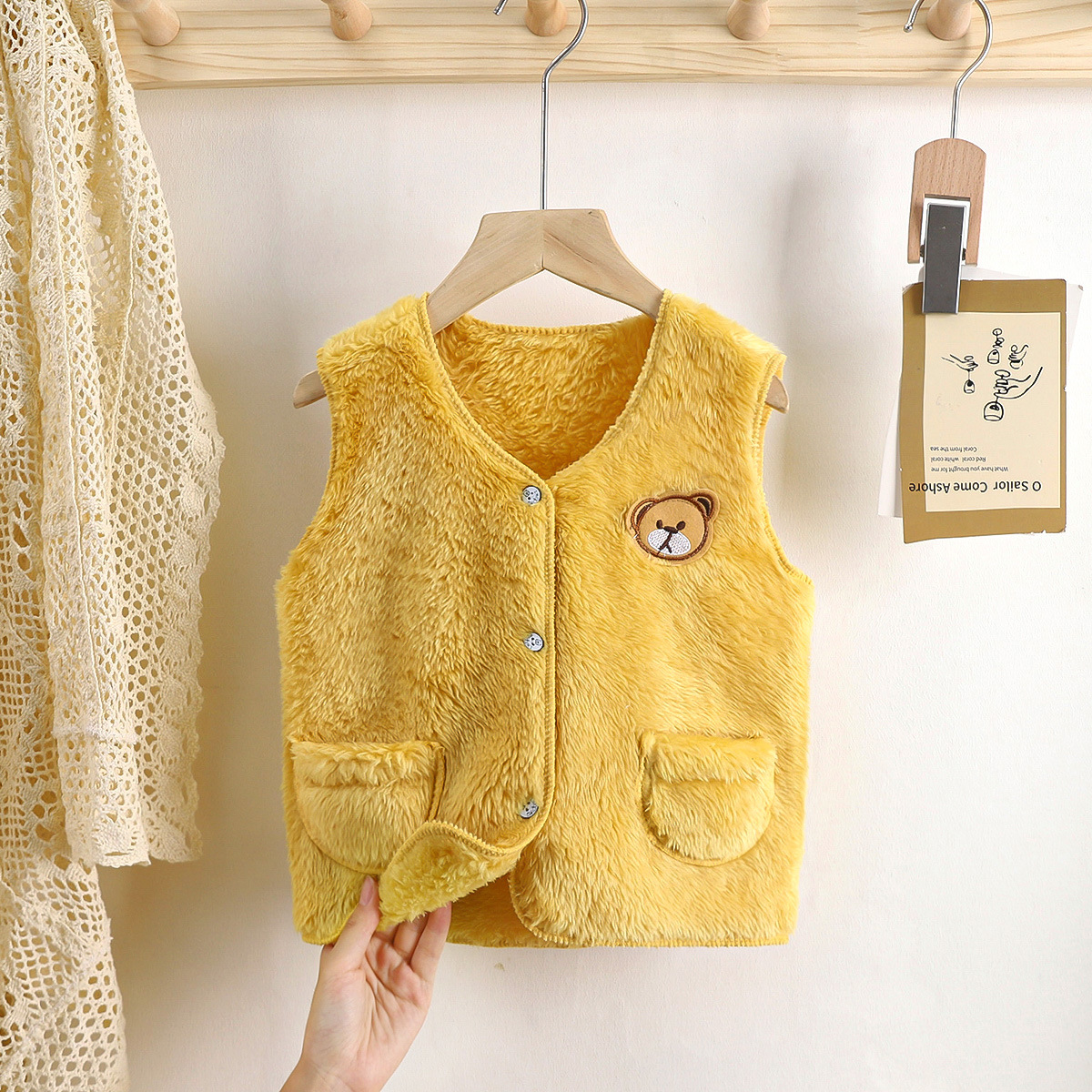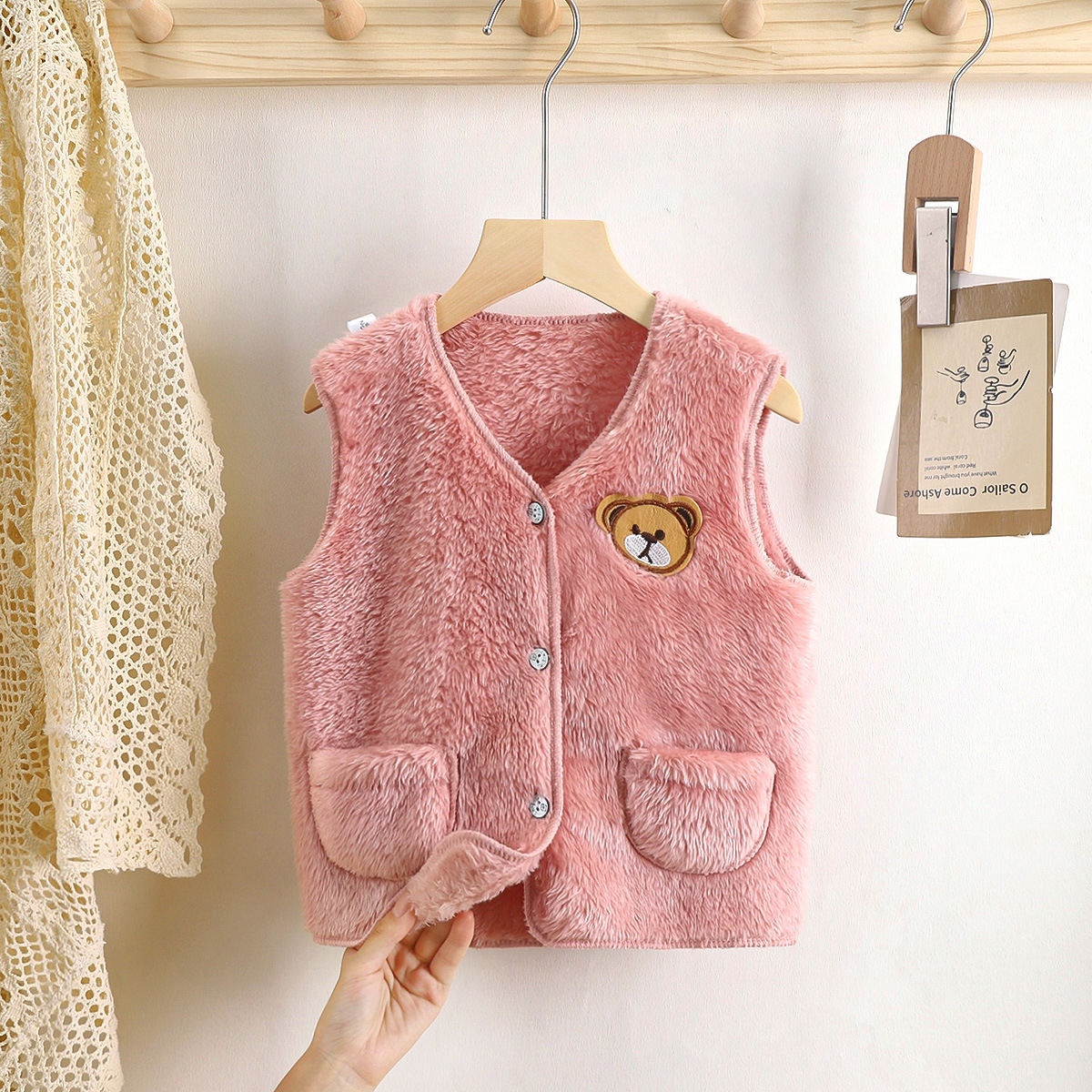 아기 소년과 소녀를위한 아이들의 새로운 조끼 봄과 가을 양면 산호 양털 기모 조끼 플란넬 한국식 따뜻한 양복 조끼