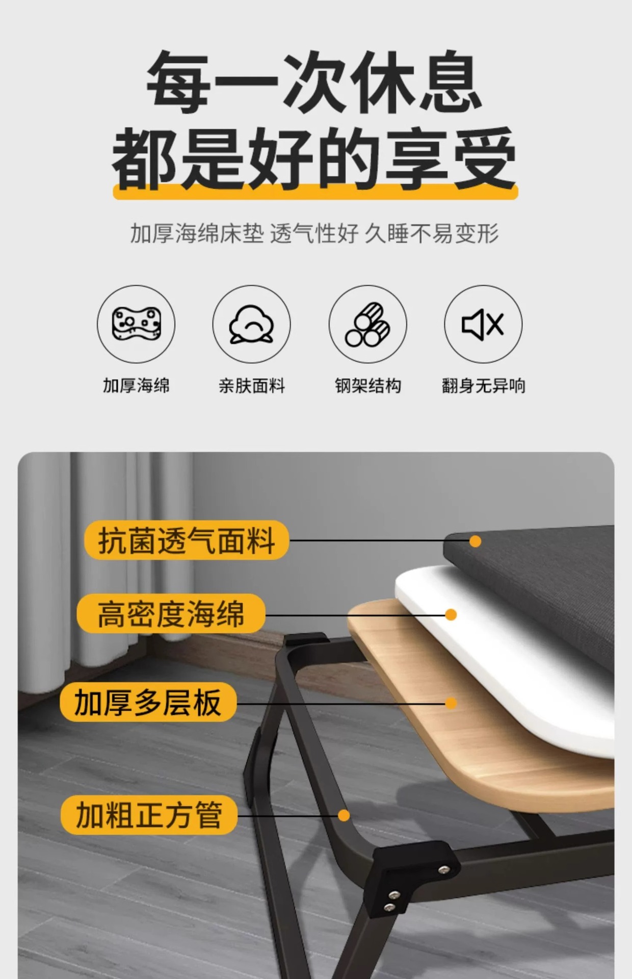 점심 휴식 침대 사무실 홈 낮잠 침대 성인 안락 의자 하드 보드 에스코트 침대 캠프 침대 싱글 접이식 침대 도매스토어 가기