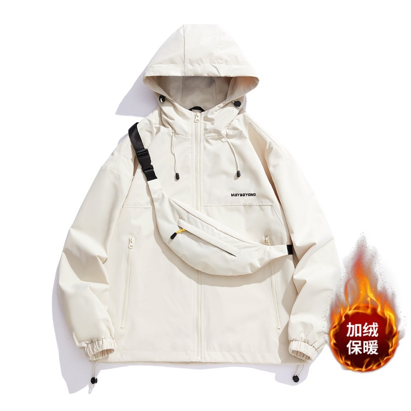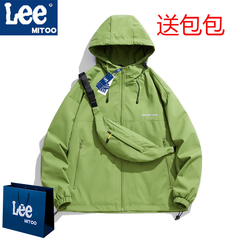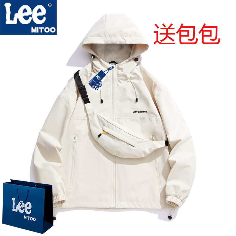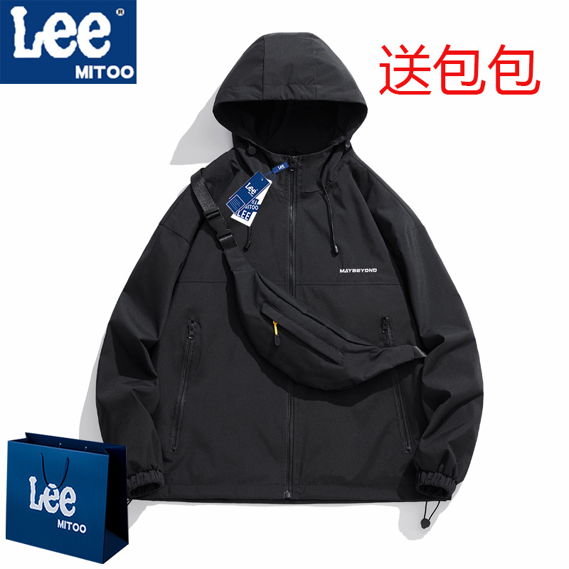 Lee & mitoo 2024 가을과 겨울 새로운 폭행 의류 남녀 야외 등산 기모 후드 방풍 재킷스토어 가기