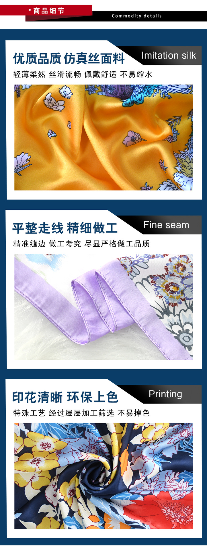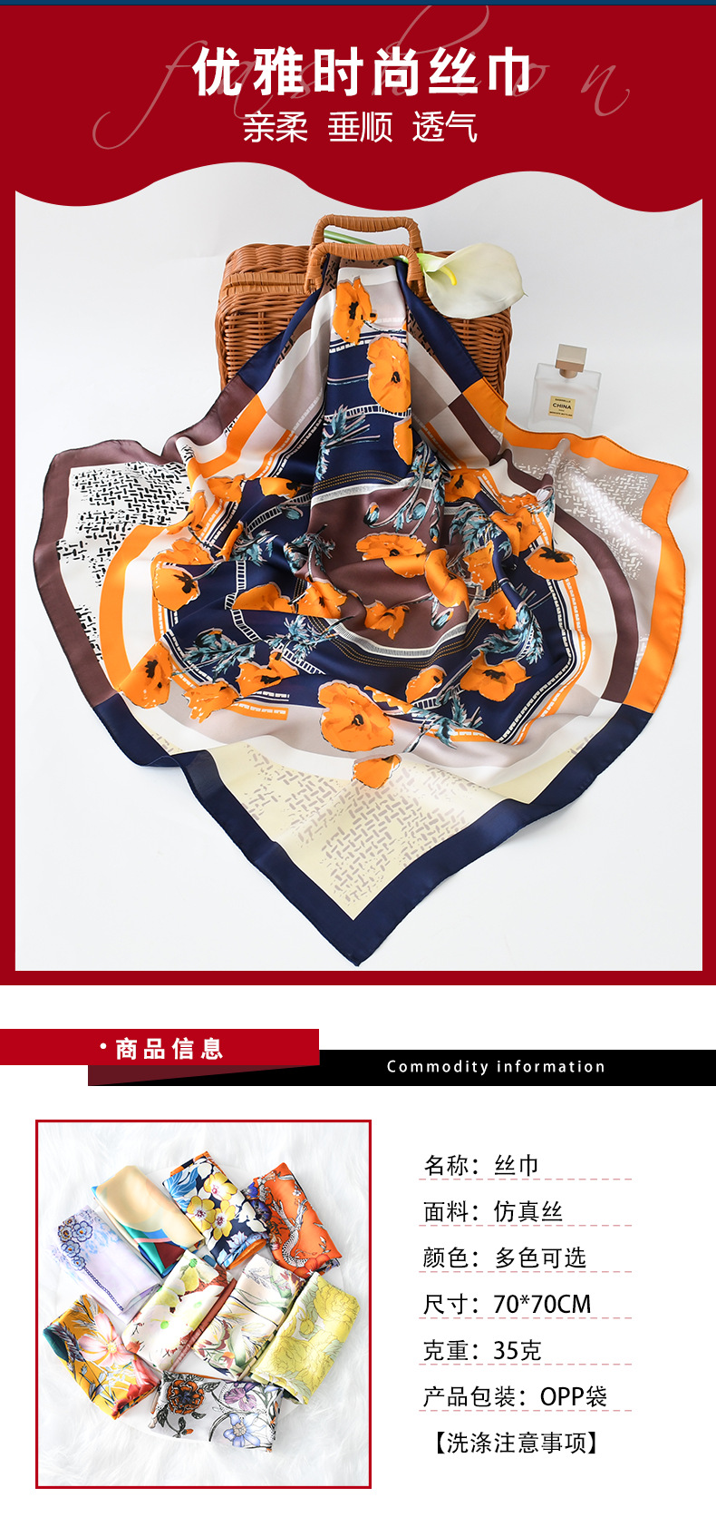 70cm 모조 실크 스카프 스퀘어 스카프 도매 고급 기질 외국식 장식 스카프 작은 꽃 스카프의 한국판스토어 가기