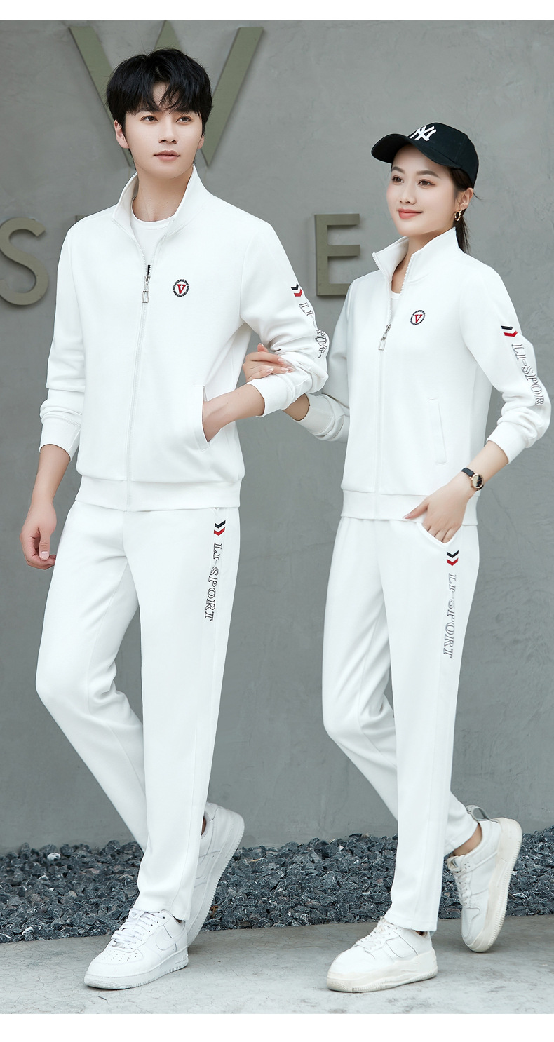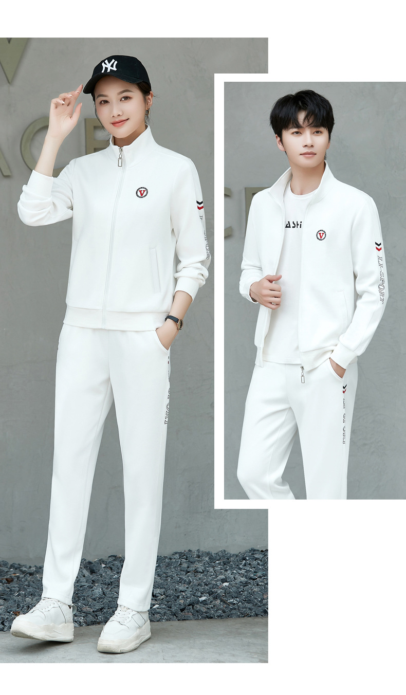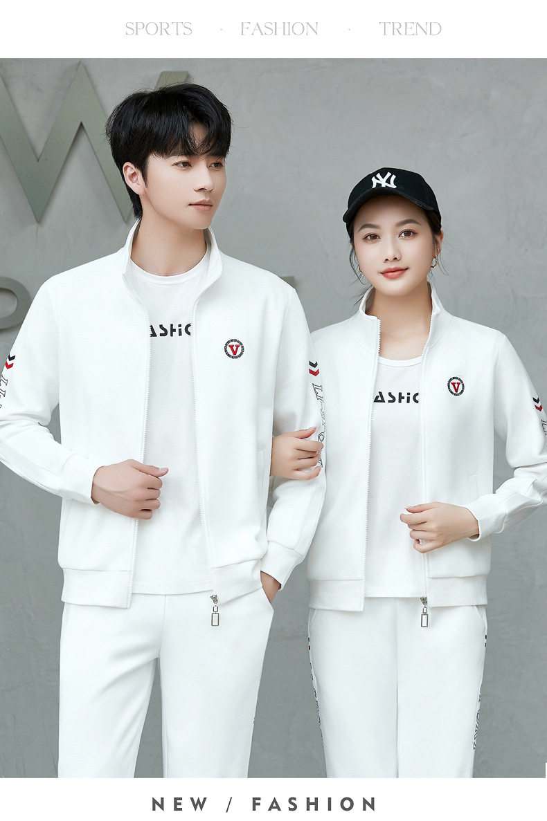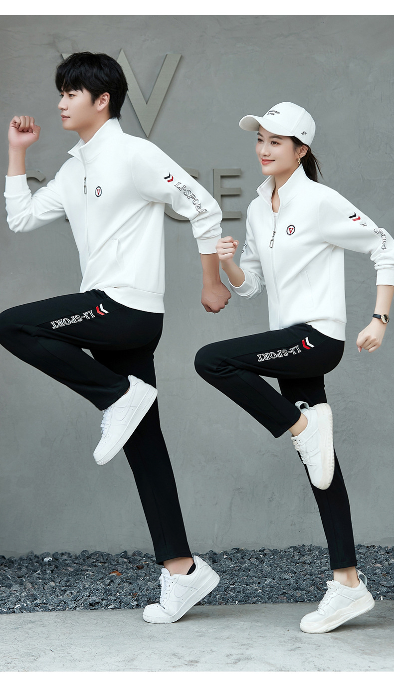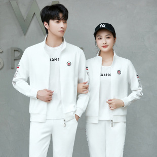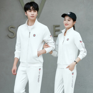 스웨터 남자의 봄과 가을 패션 캐주얼 커플 스포츠 세트 남자와 여자의 그룹 한국식 러닝 세트 쓰리 피스 화이트