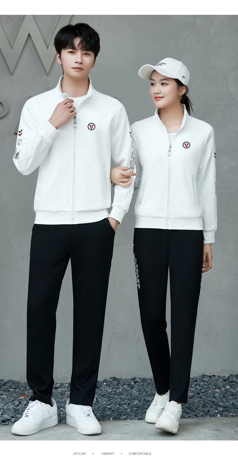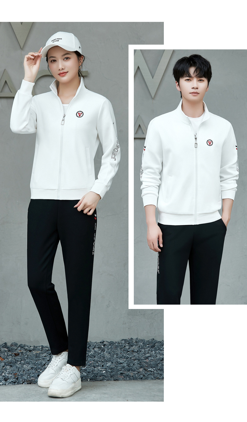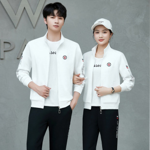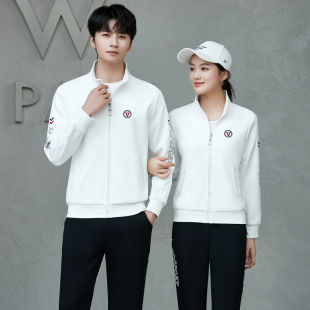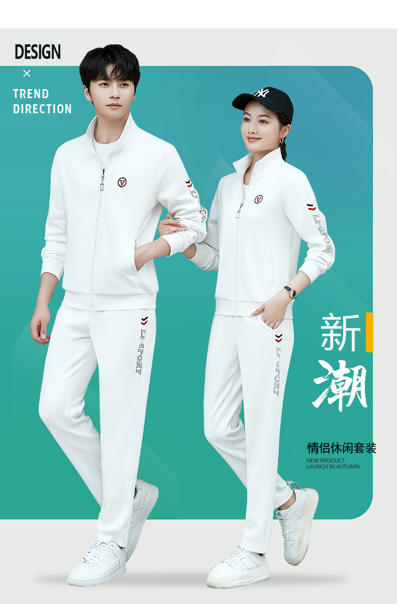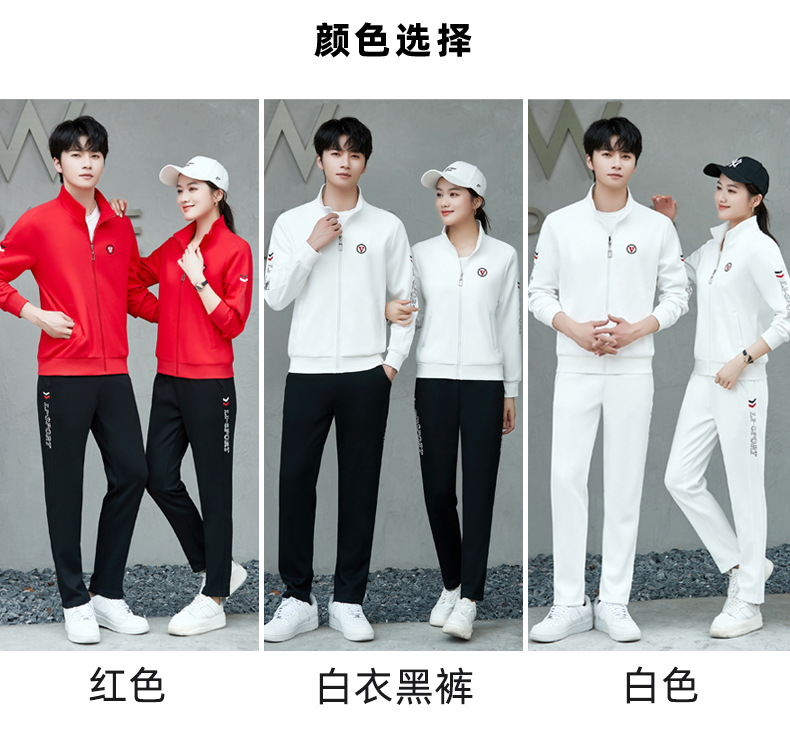 스웨터 남자의 봄과 가을 패션 캐주얼 커플 스포츠 세트 남자와 여자의 그룹 한국식 러닝 세트 쓰리 피스 화이트