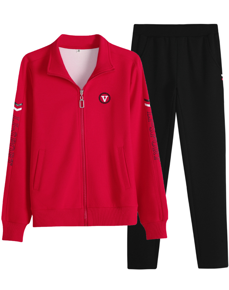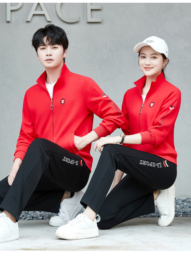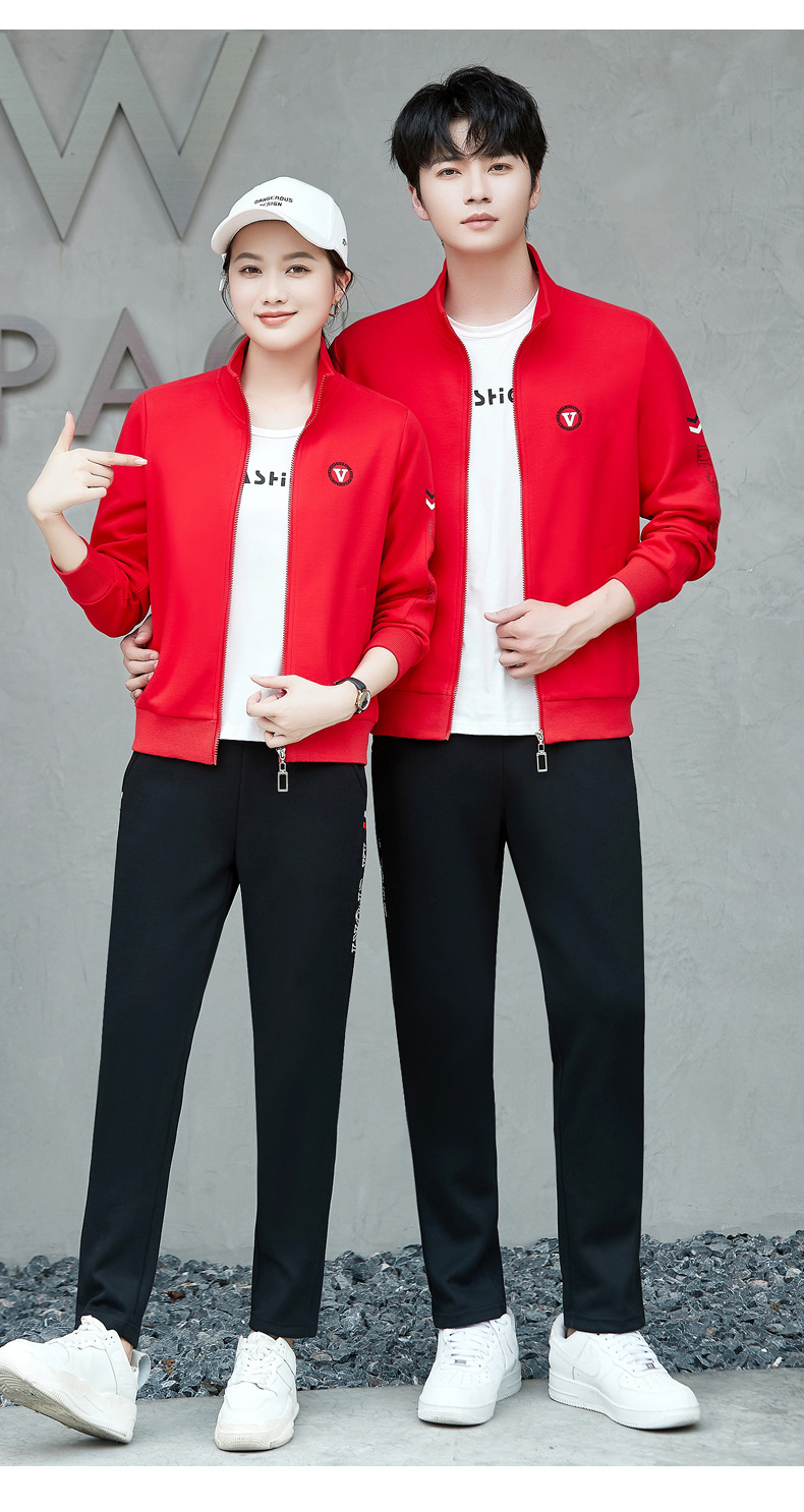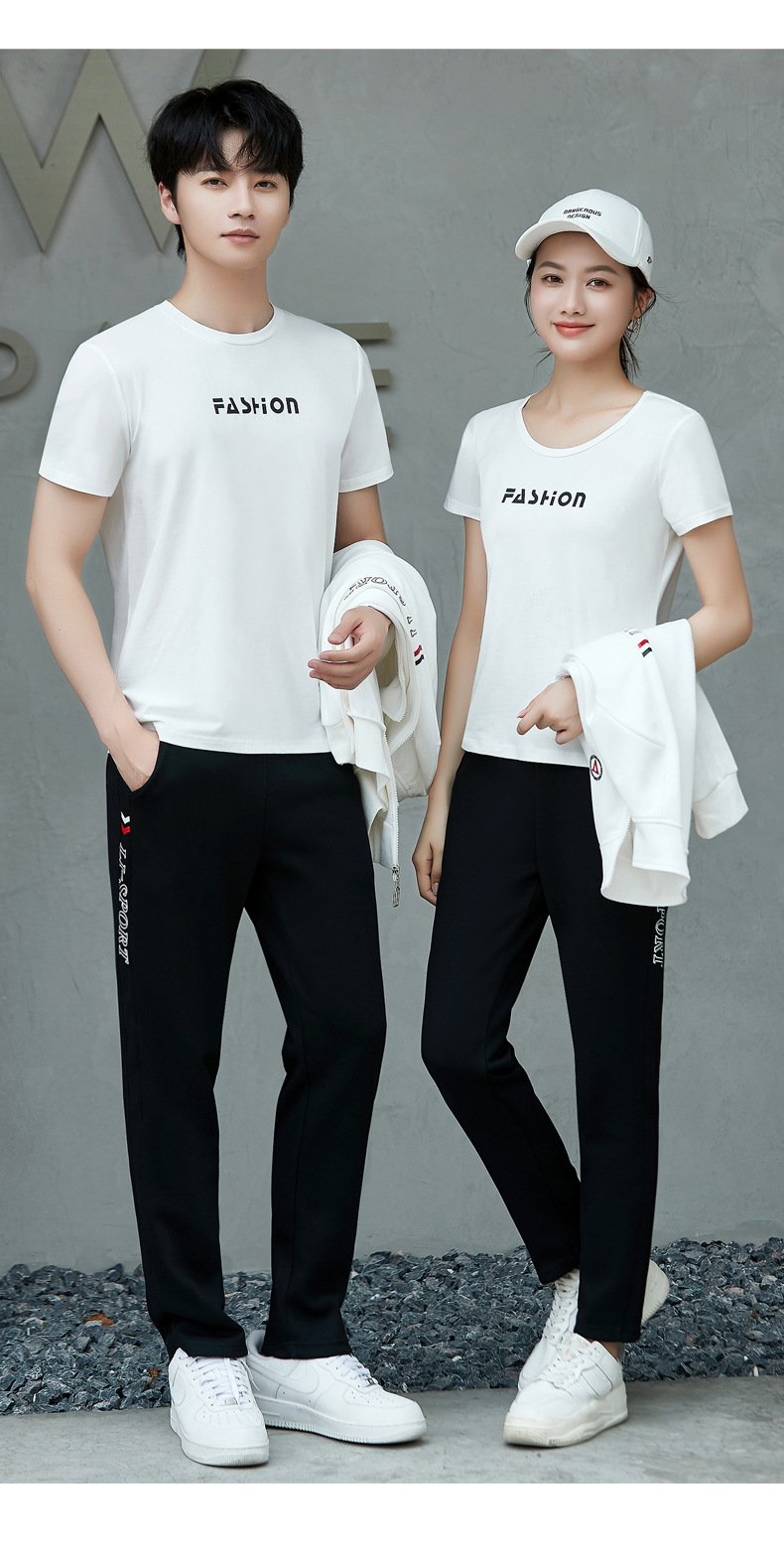 스웨터 남자의 봄과 가을 패션 캐주얼 커플 스포츠 세트 남자와 여자의 그룹 한국식 러닝 세트 쓰리 피스 화이트