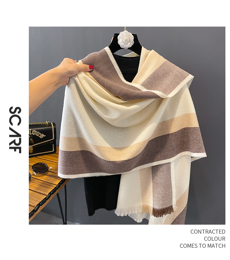 가을과 겨울 2023 새로운 울 스카프 여자의 스트립 간단한 따뜻한 두꺼운 스카프 패션 간단한 숄 여성스토어 가기