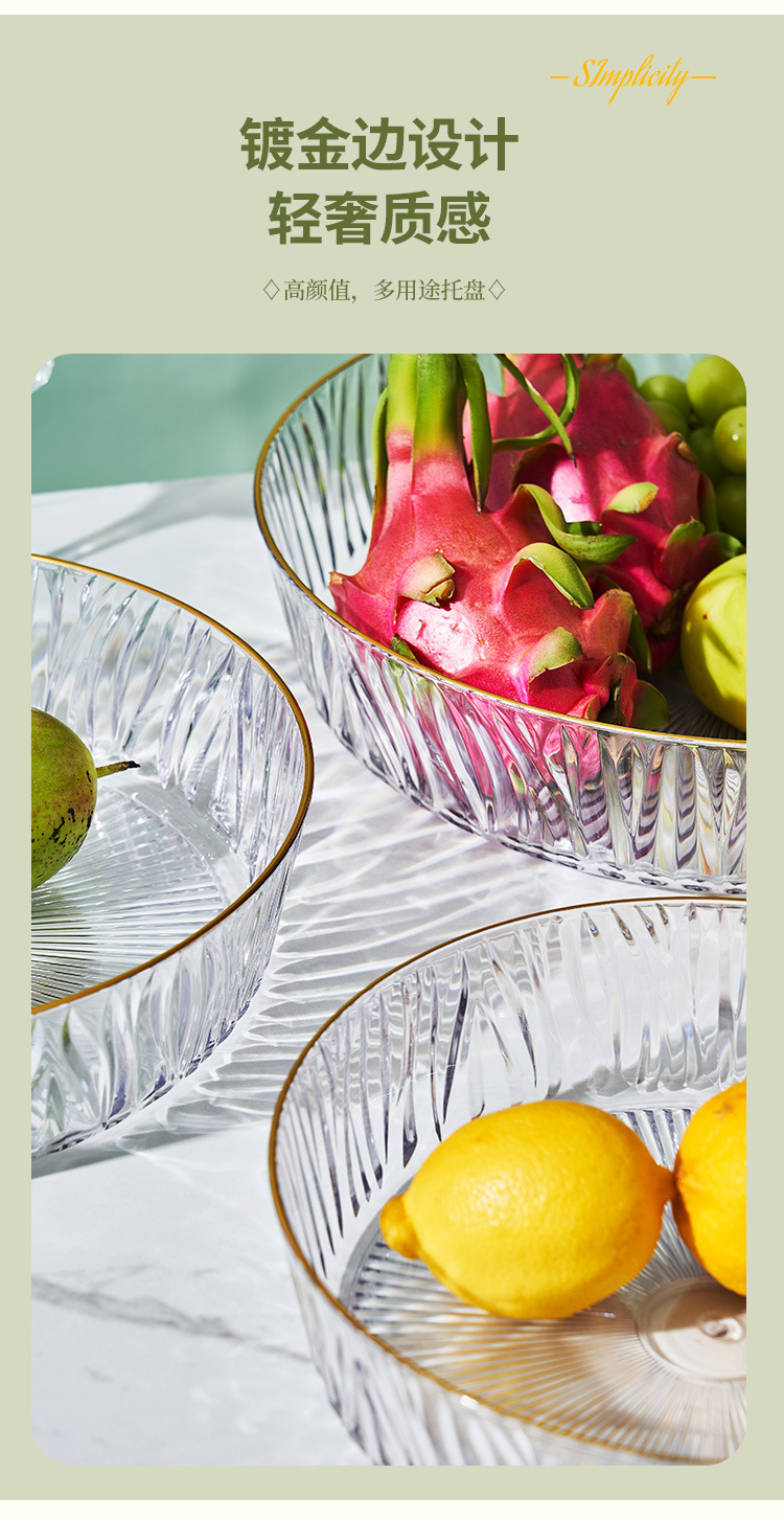 스타일 라이트 럭셔리 가정용 식품 트레이 가정용 과일 트레이 간단한 투명 과일 바구니 높은 아름다움 가치 프놈펜 과일 트레이