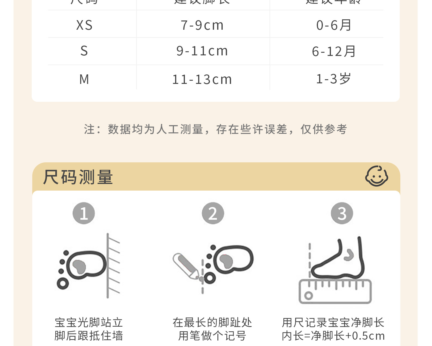 • XS 0-6개월, 발 길이 7-10cm에 적합