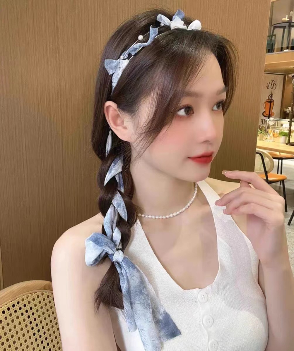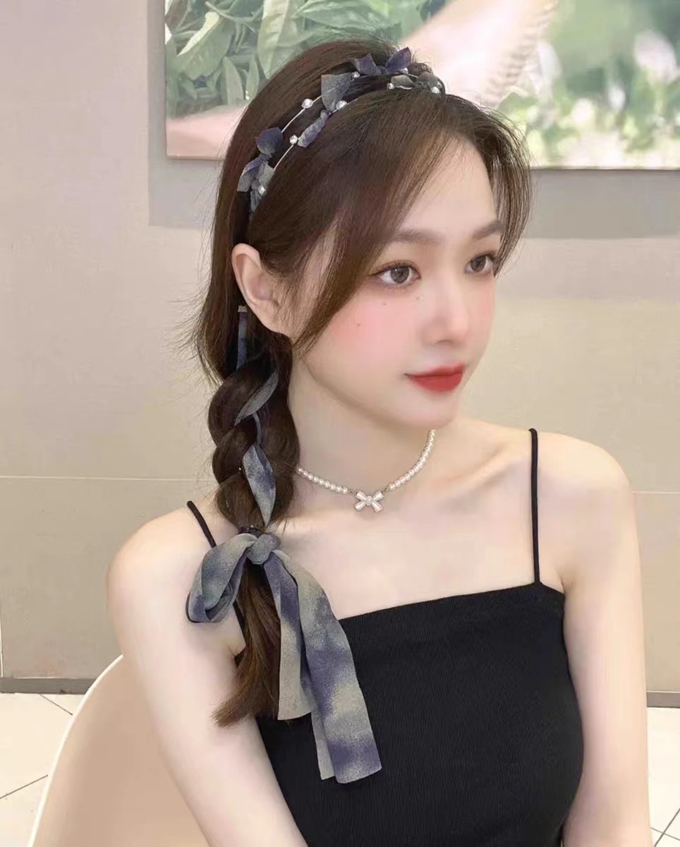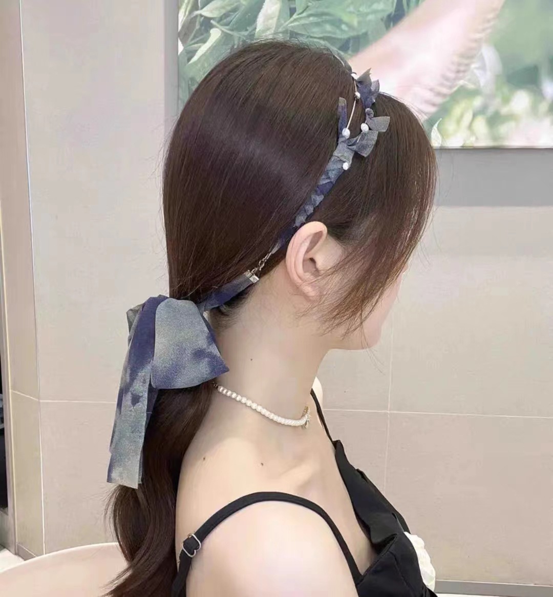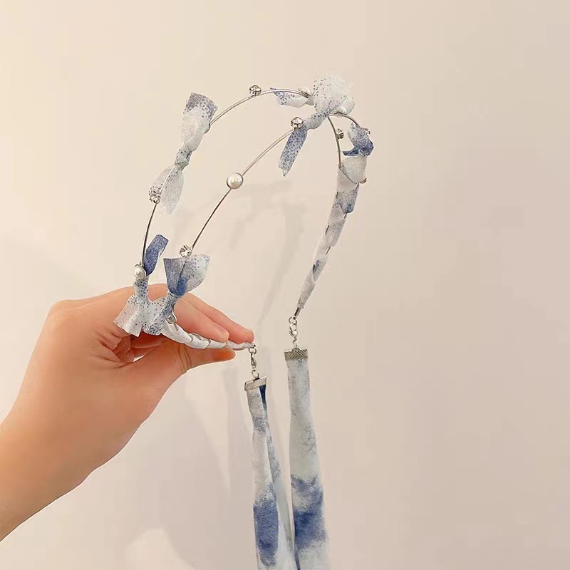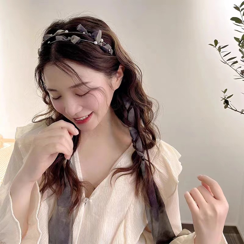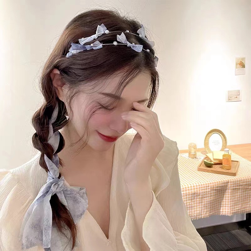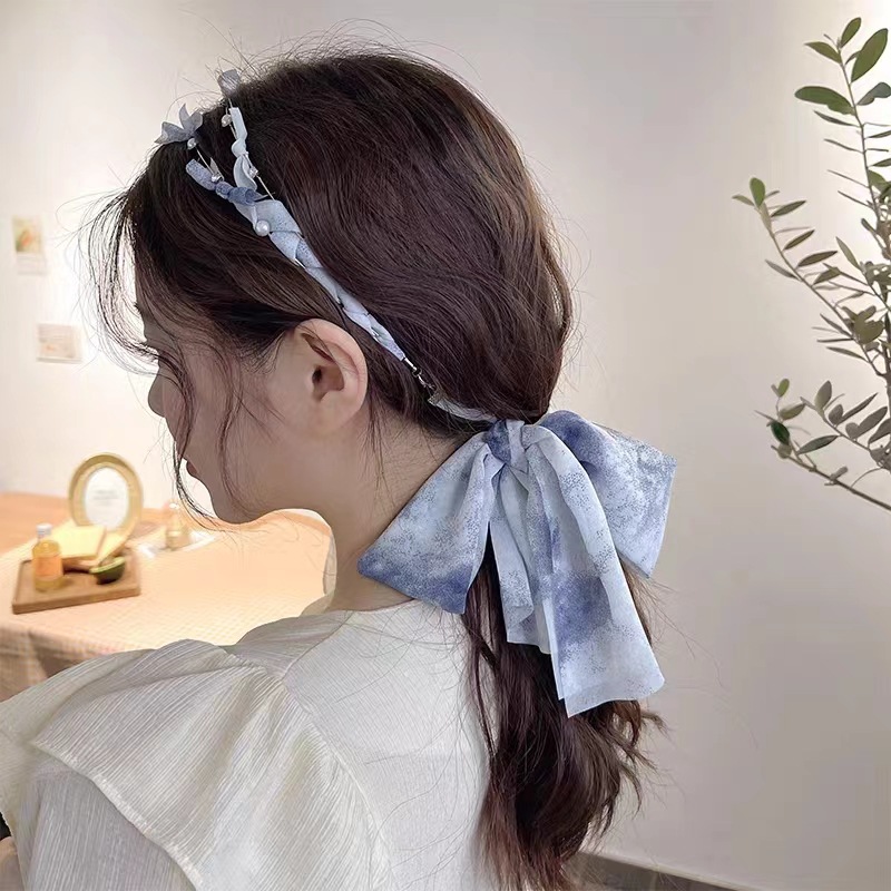 슈퍼 요정 리본 머리띠 여름 얇은 프랑스 스타일 머리띠 실크 스카프 머리띠 여성용 넥타이 머리 리본 헤어 카드 요정 헤어 액세서리스토어 가기