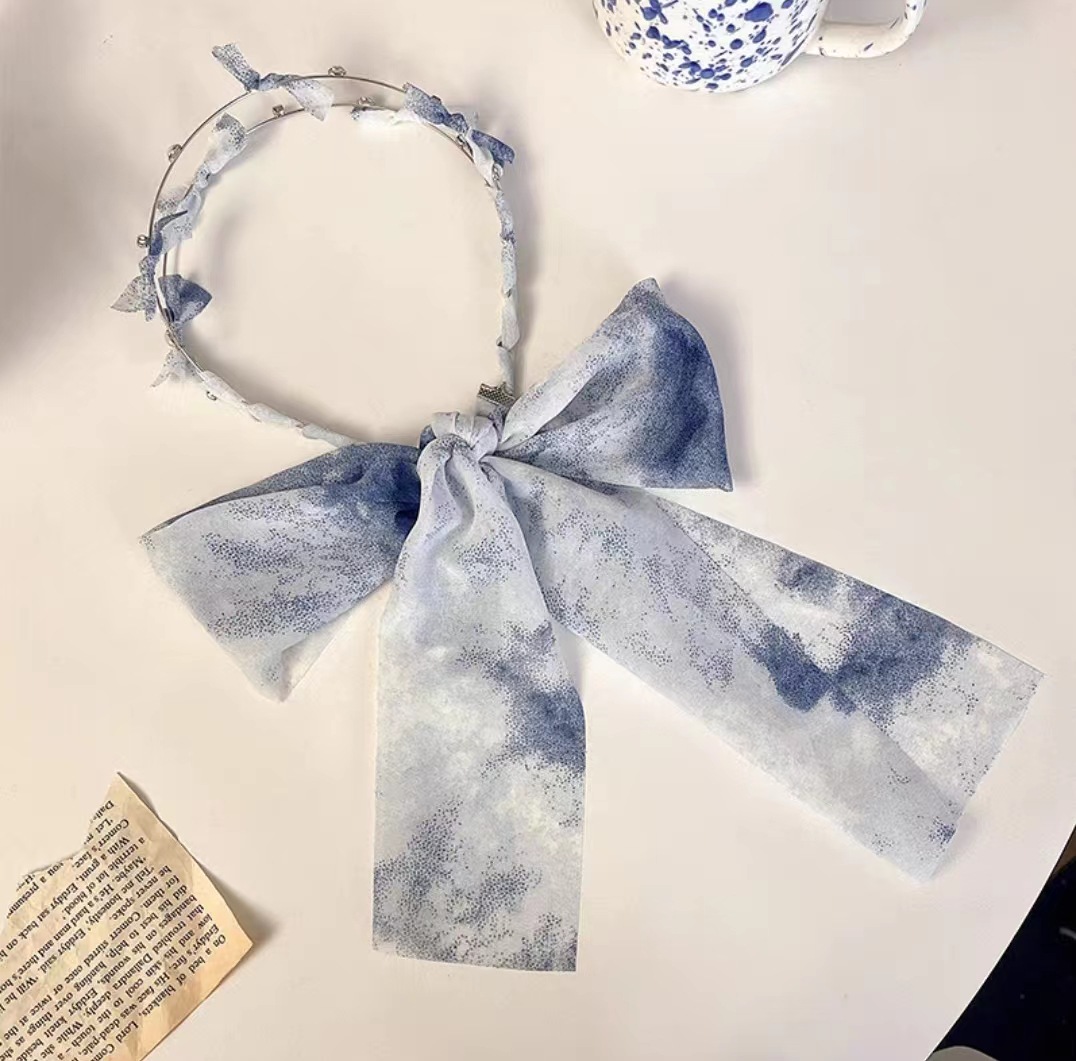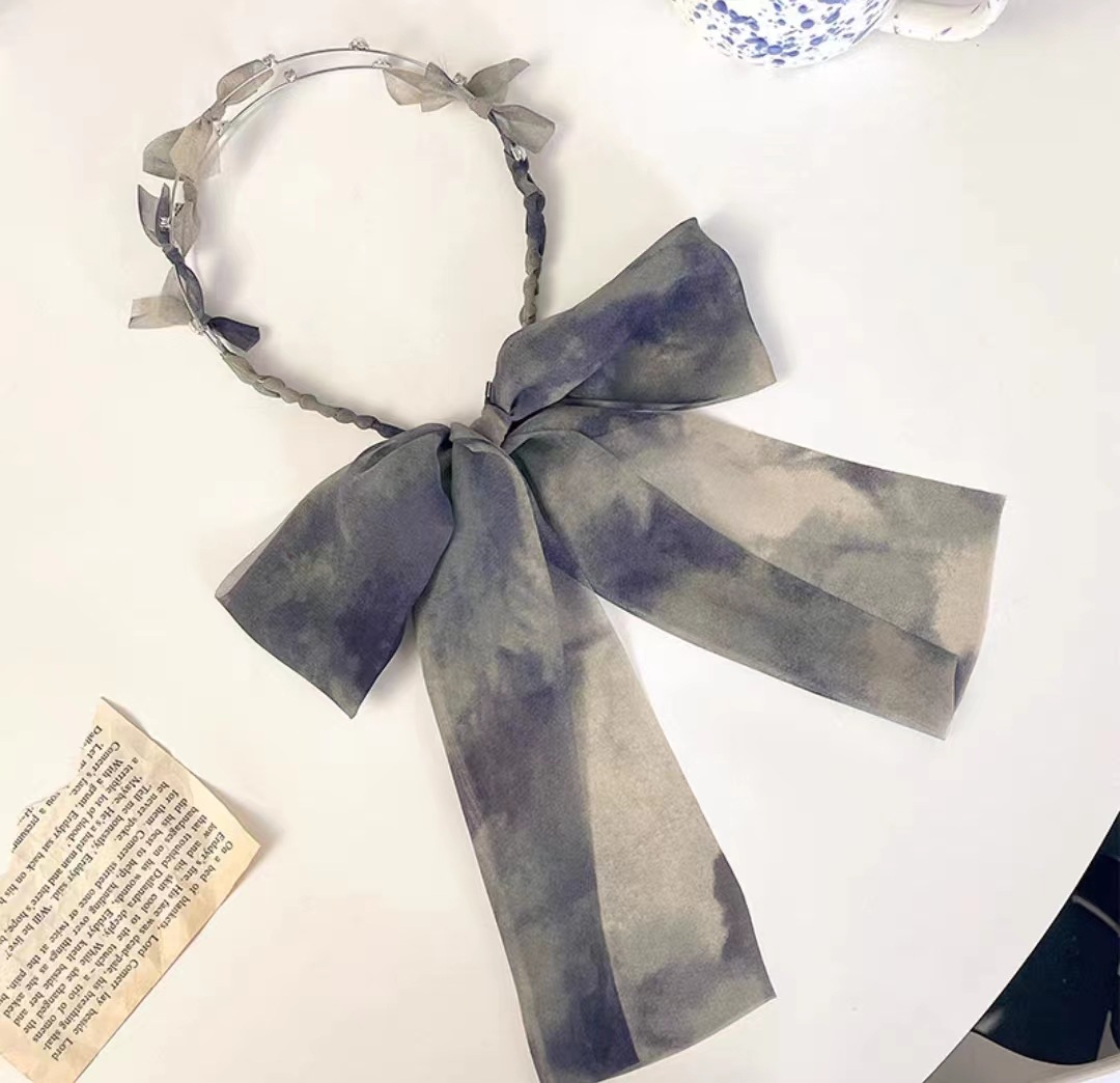 슈퍼 요정 리본 머리띠 여름 얇은 프랑스 스타일 머리띠 실크 스카프 머리띠 여성용 넥타이 머리 리본 헤어 카드 요정 헤어 액세서리