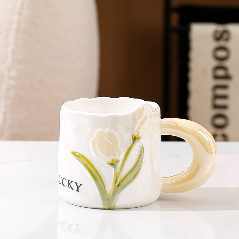 크리 에이 티브 튤립 머그 높은 외관 가치 틈새 디자인 감각 세라믹 컵 여아 가정 마시는 컵 커피 컵스토어 가기