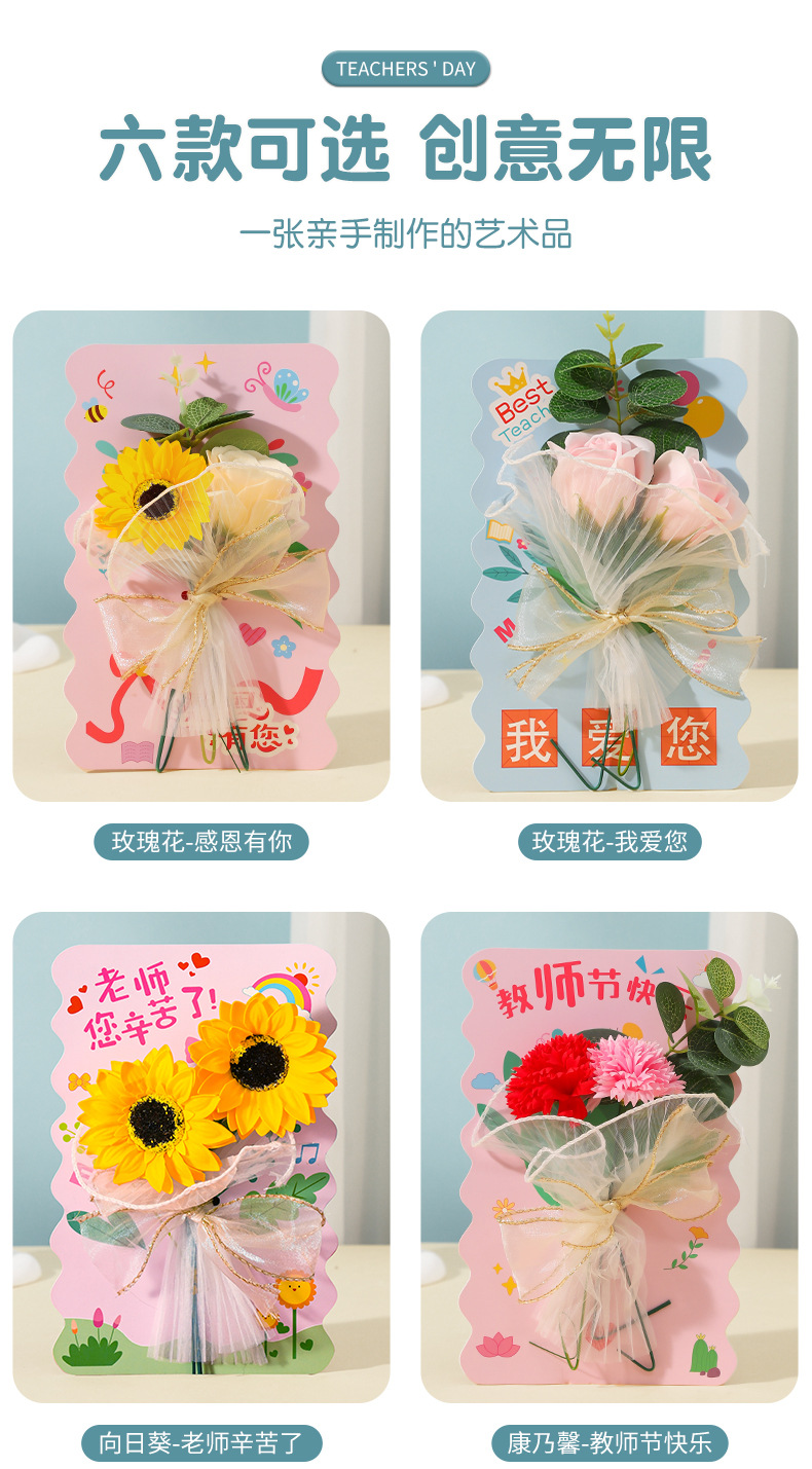 스승의 날 꽃다발 축하 카드 고급 수제 DIY 유치원 선생님 선물 2025 신형 감사 카드