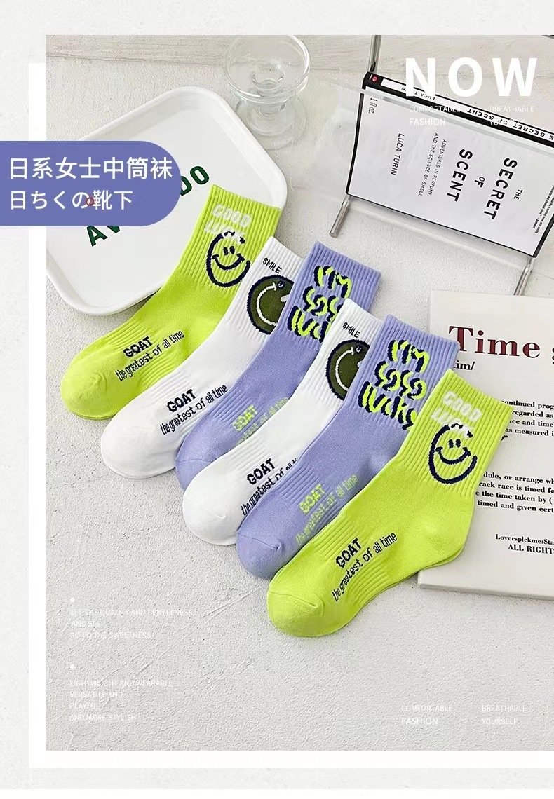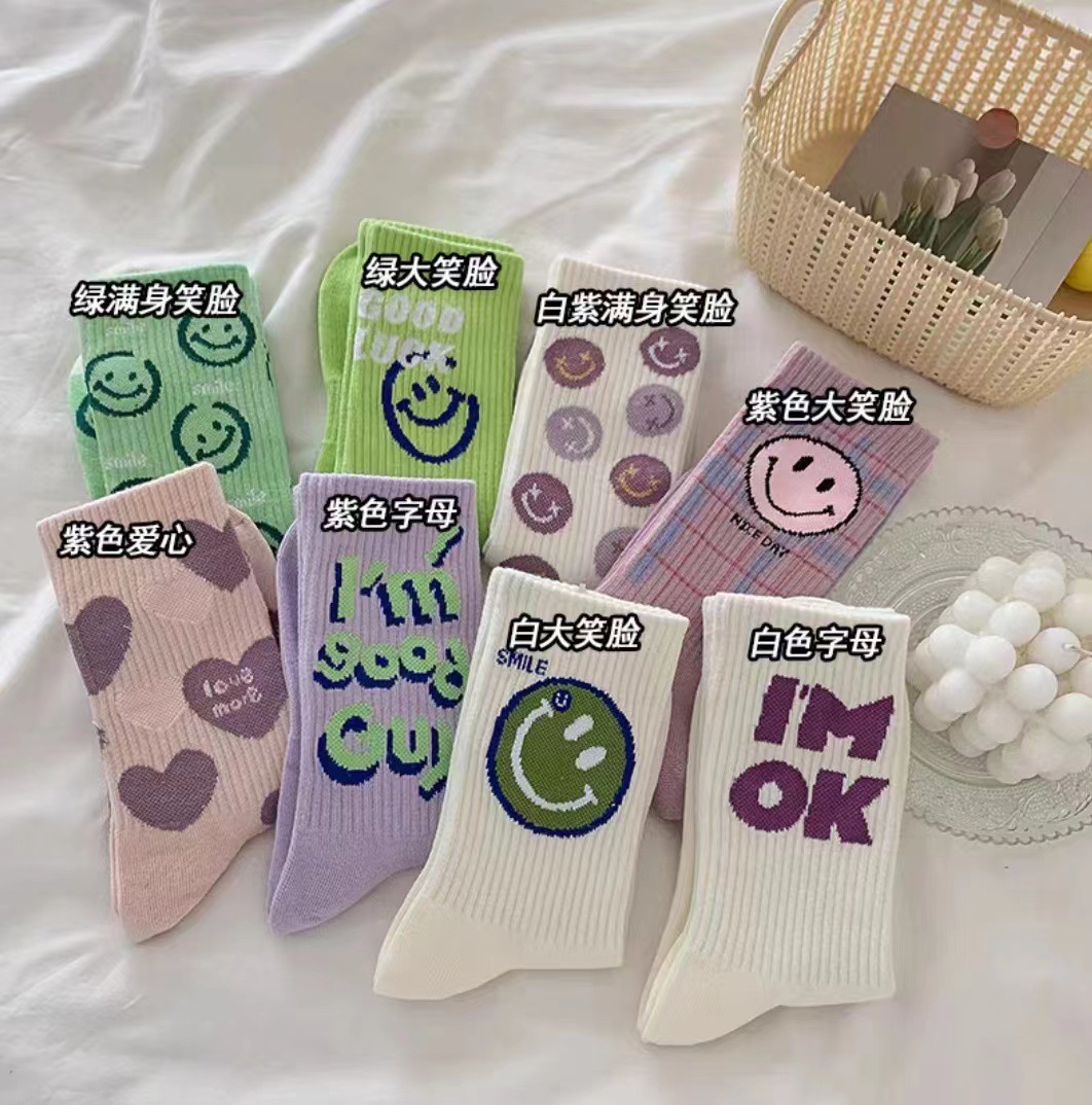 한국판 동대문 가을 겨울 스마일 양말, 샤크 팬츠 외출용 양말, 여성용 인스타 트렌드 인플루언서 스타일 스포츠 봄 여름용