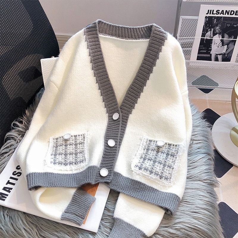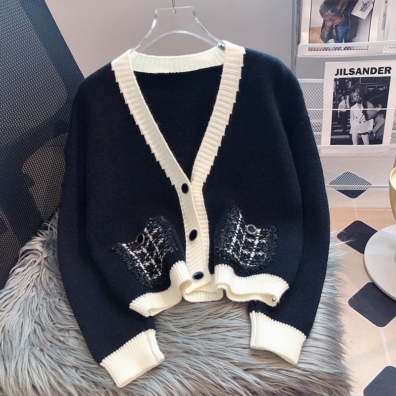 V-넥 스웨터 코트 여성 가을과 겨울 2023 새로운 스타일 샤넬 스타일 여성용 하이 엔드 웨스턴 스타일 니트 가디건스토어 가기