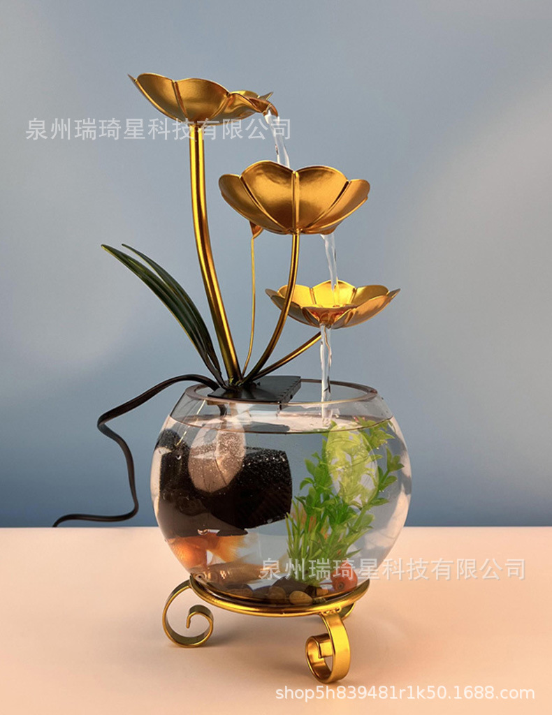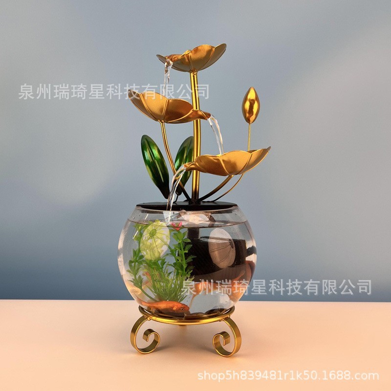 연꽃 풍수 흐르는 물 장식품 꽃봉오리 나비 작은 물고기 탱크 거실 장식품 공장 물 순환 선물스토어 가기