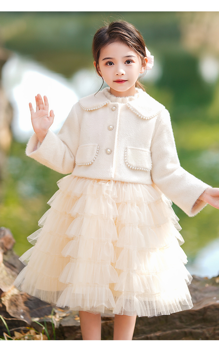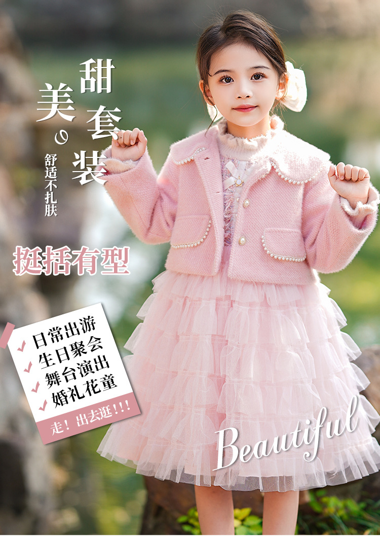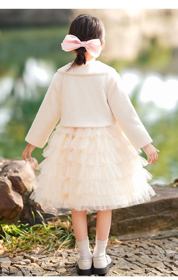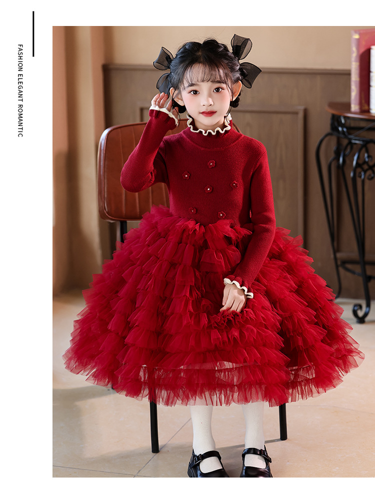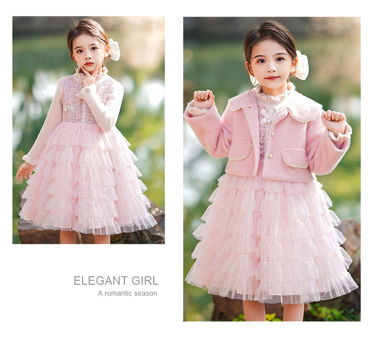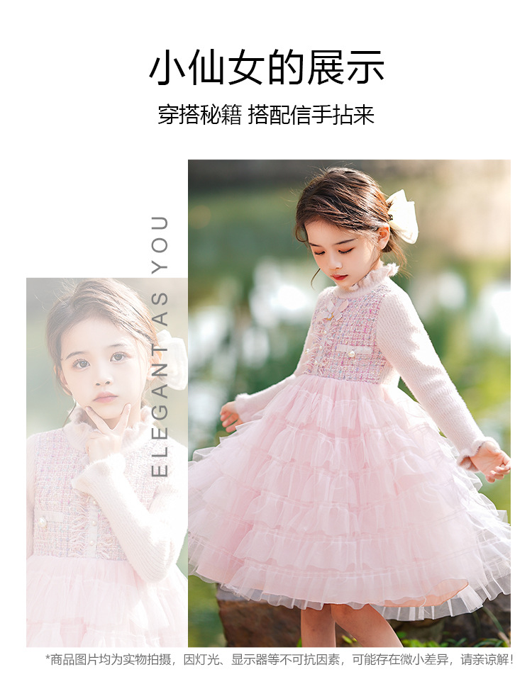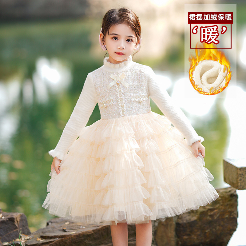 소녀 스웨터 원피스 가을과 겨울 아기의 서양식 샤넬 스타일 보틀 니트 기모 공주 푹신한 원사 케이크 스커트