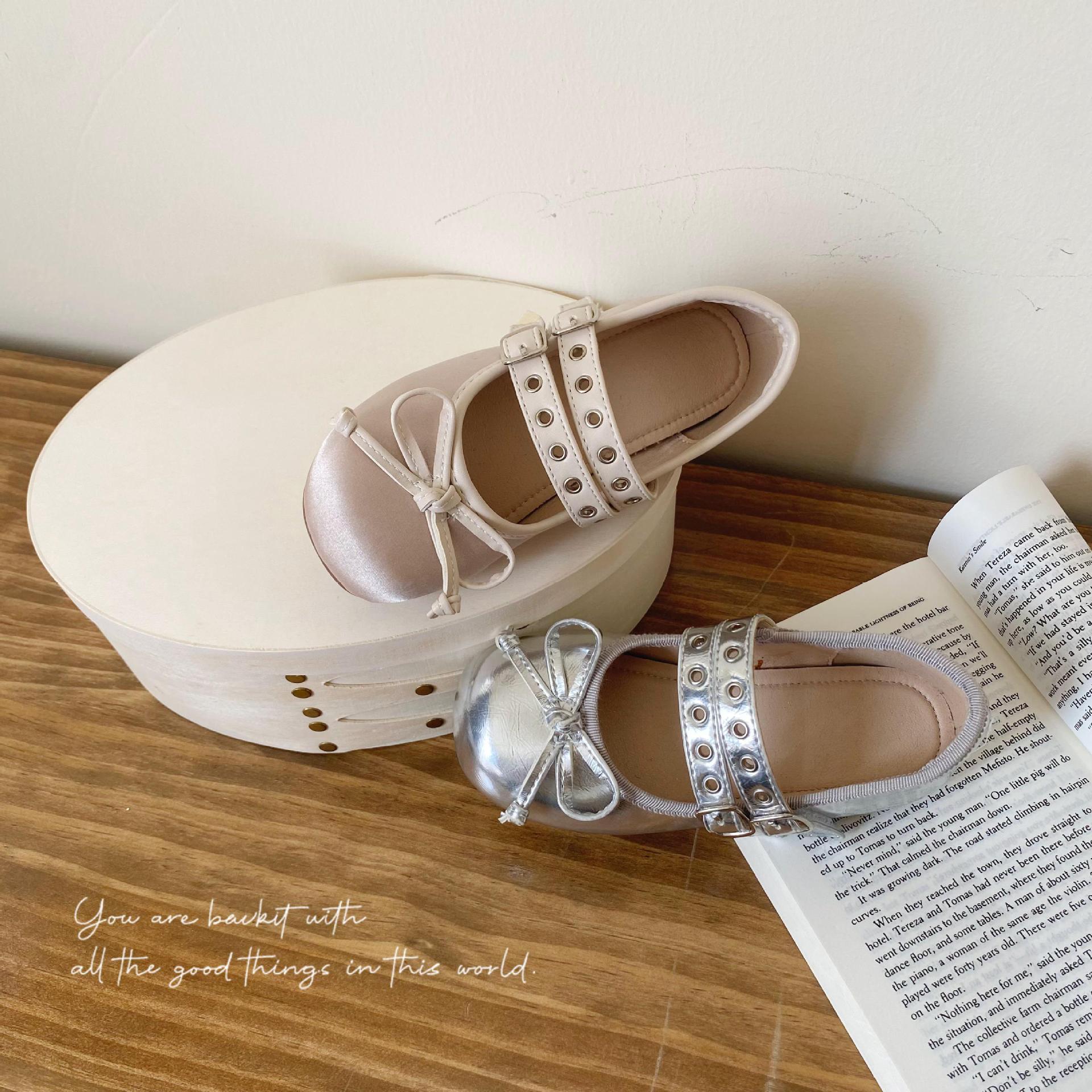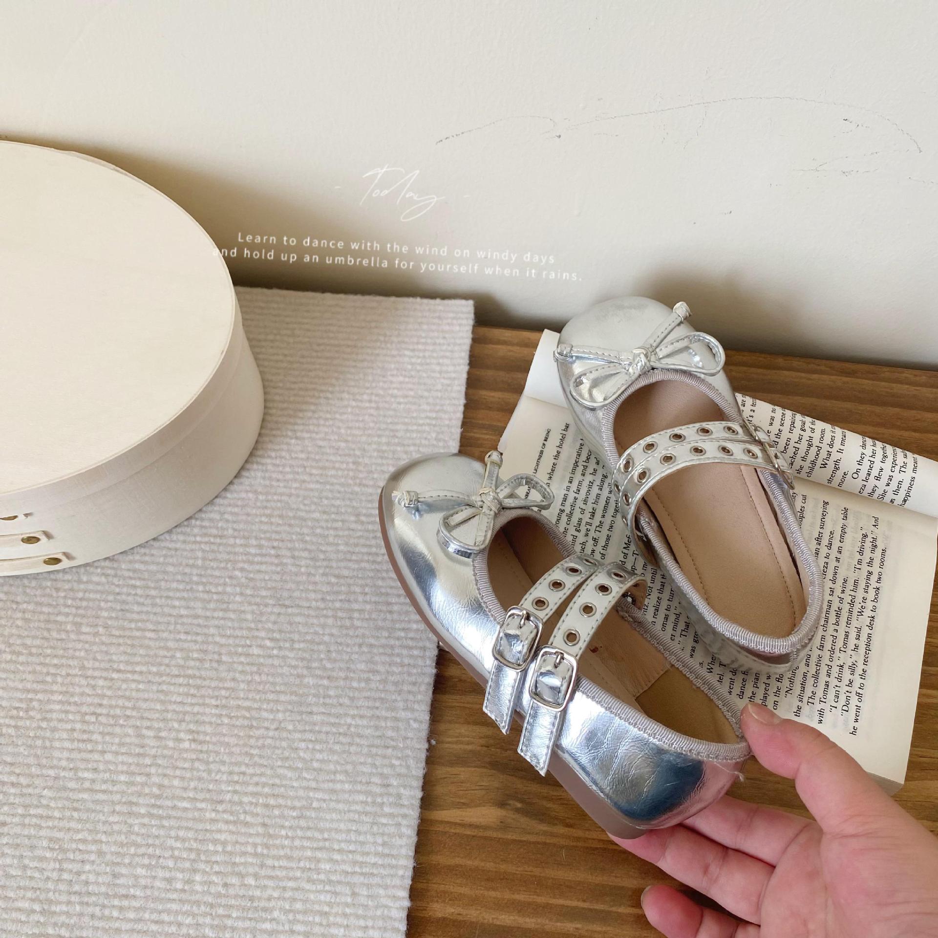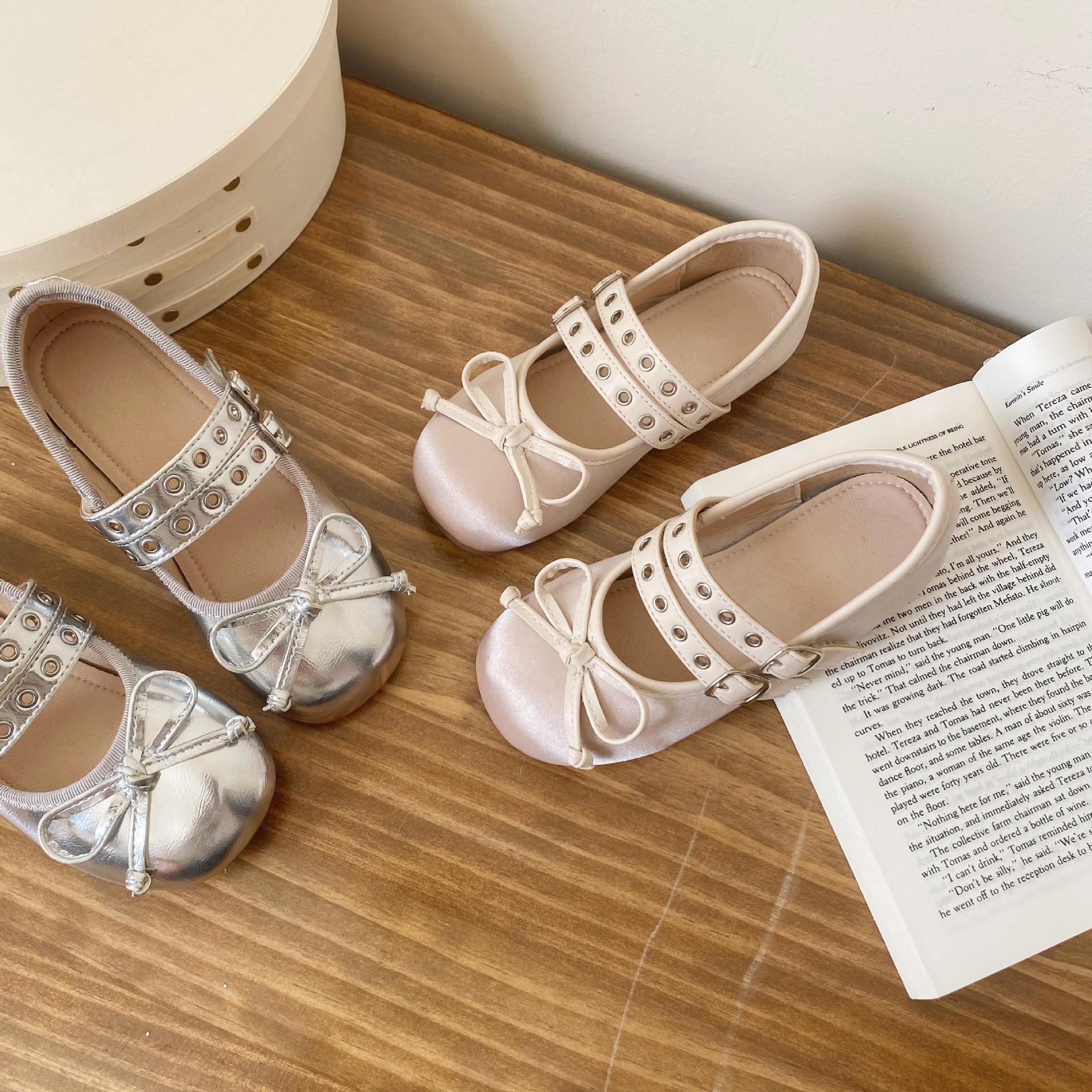 2025년 신상 달콤하고 다재다능한 라운드 토 얕은 굽 발레 슈즈 리본 공주 신발 여아 신발 편안한 신발