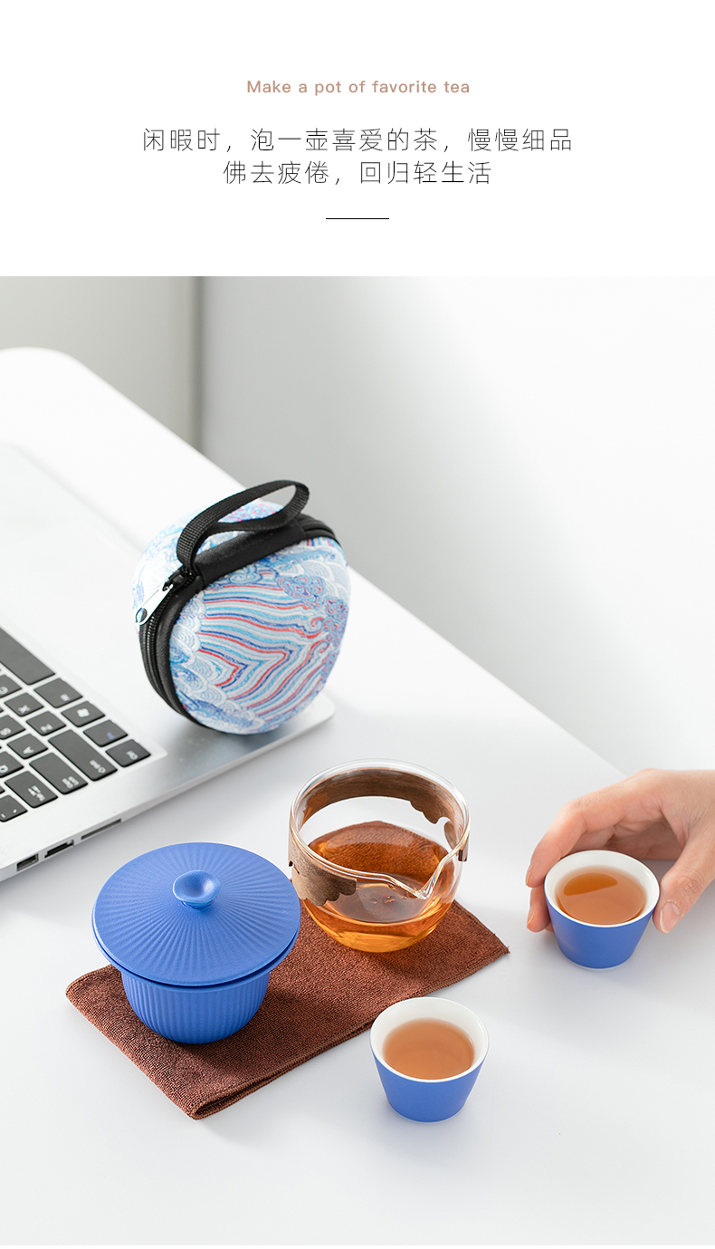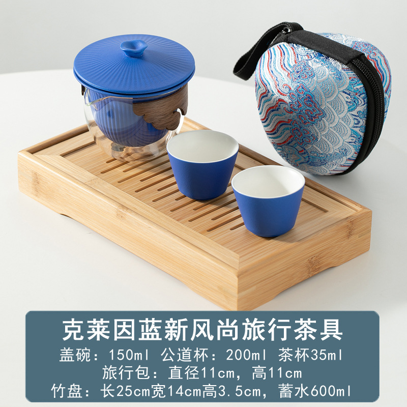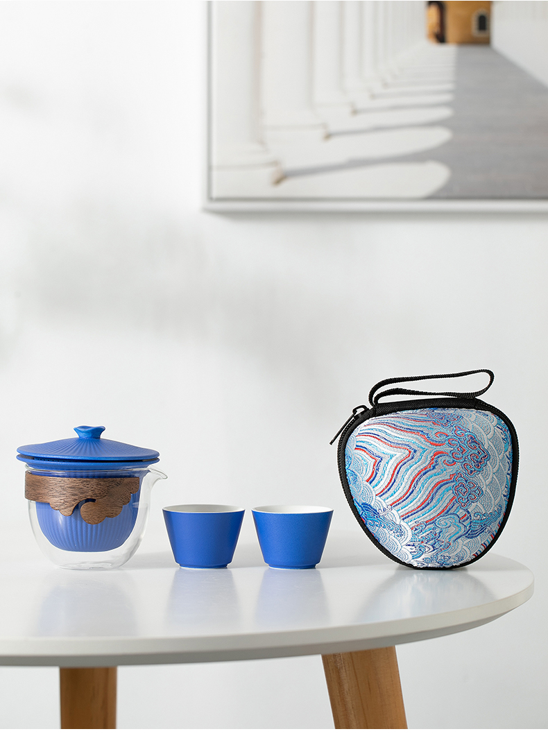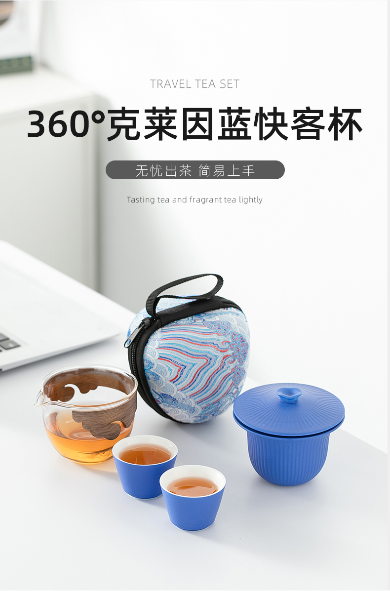 클라인 블루 여행용 차 세트 야외용 티컵 소형 세트 여성용 간편한 1인용 퀵컵 차 주전자