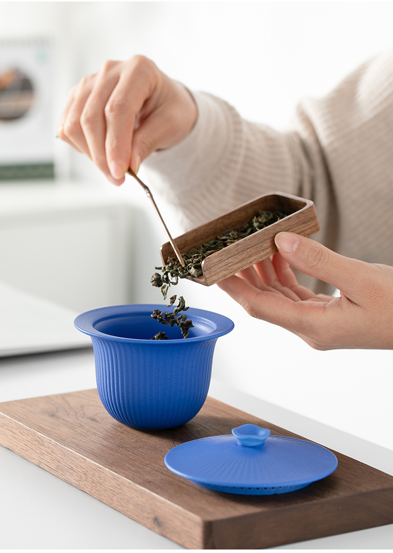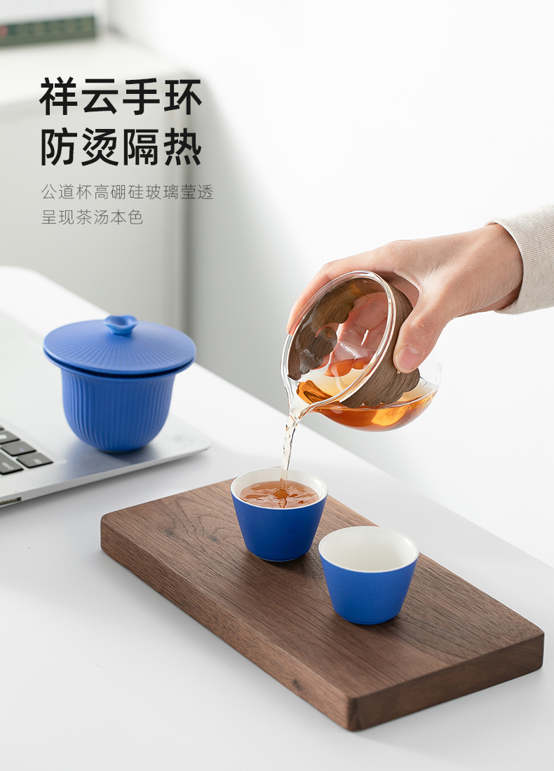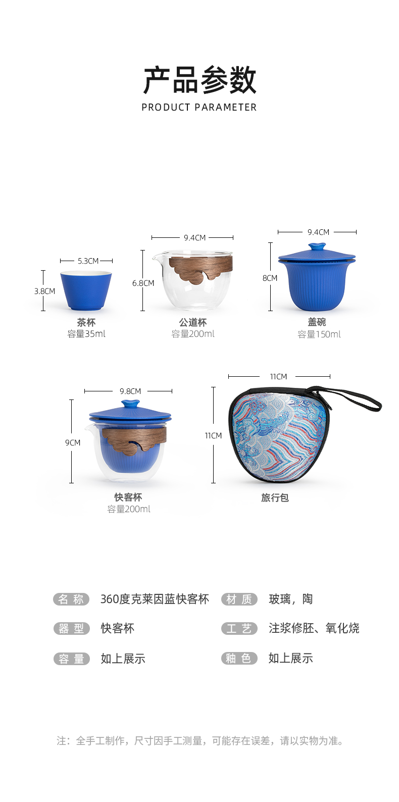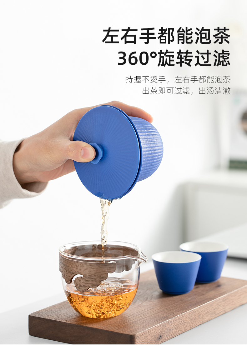 클라인 블루 여행용 차 세트 야외용 티컵 소형 세트 여성용 간편한 1인용 퀵컵 차 주전자