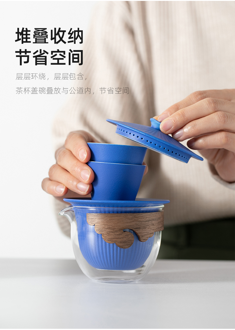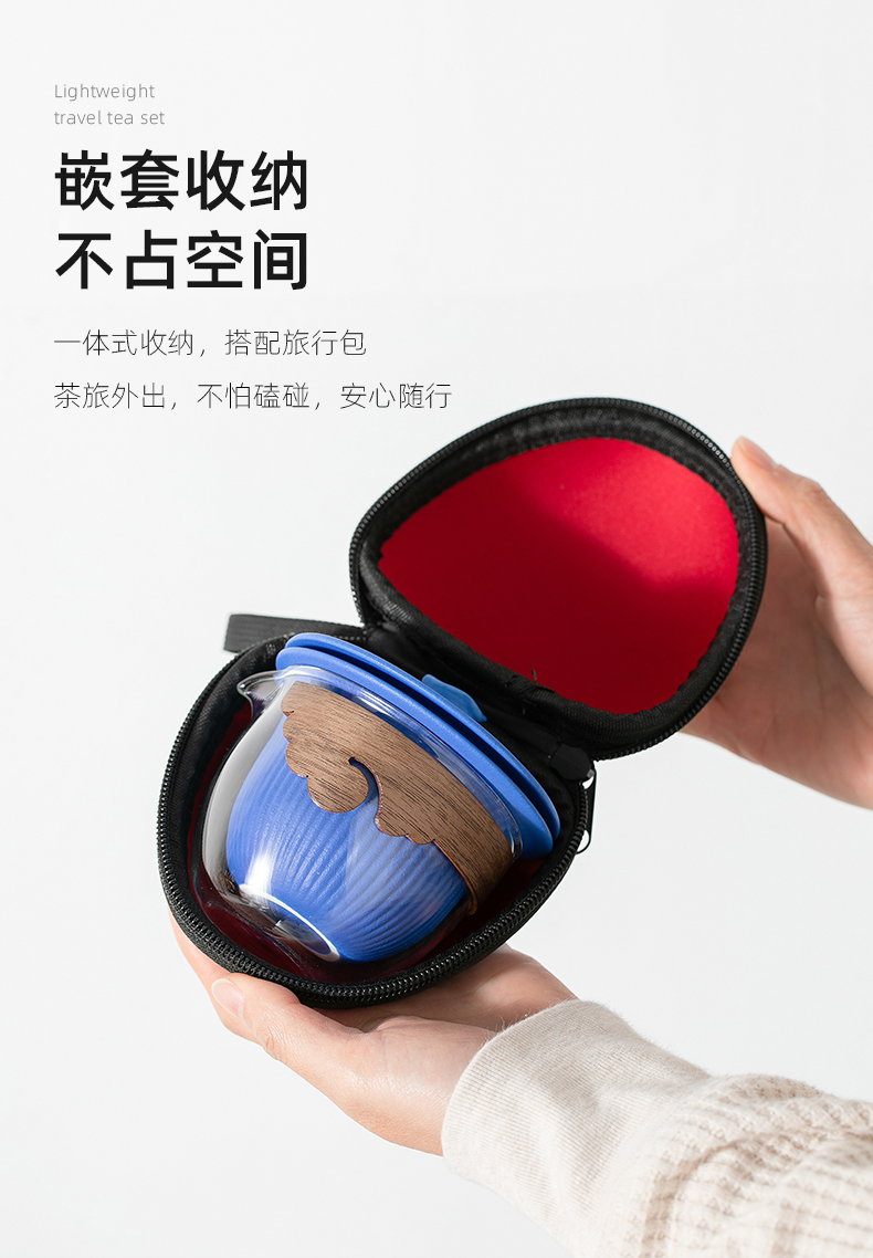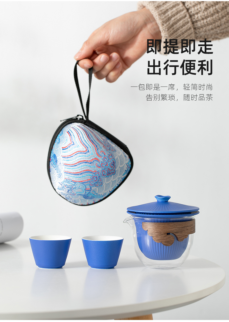 클라인 블루 여행용 차 세트 야외용 티컵 소형 세트 여성용 간편한 1인용 퀵컵 차 주전자스토어 가기