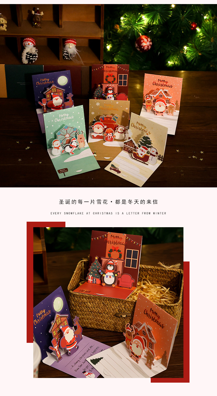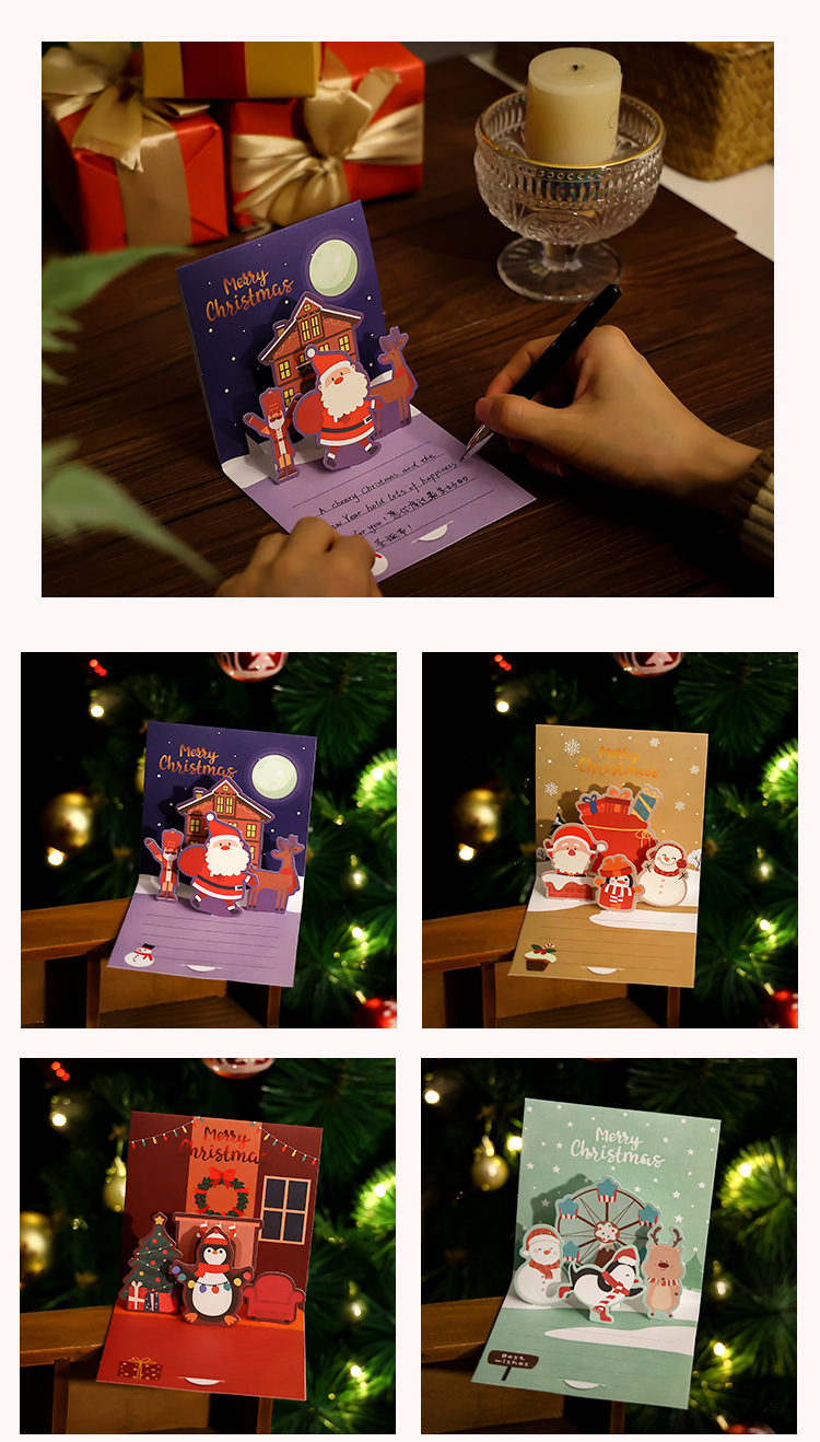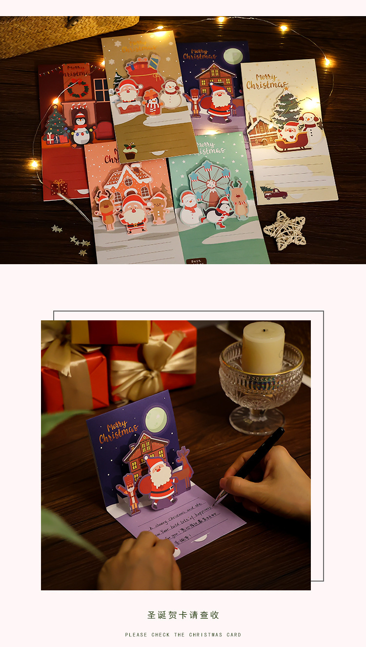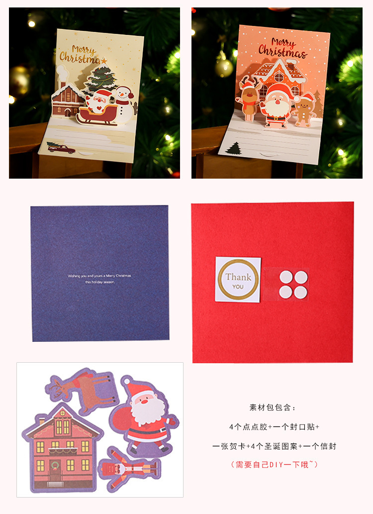 크리스마스 인사말 카드 작은 카드 만화 접이식 하이 센스 휴일 축복 메시지 카드 수제 DIY 만들기 봉투스토어 가기