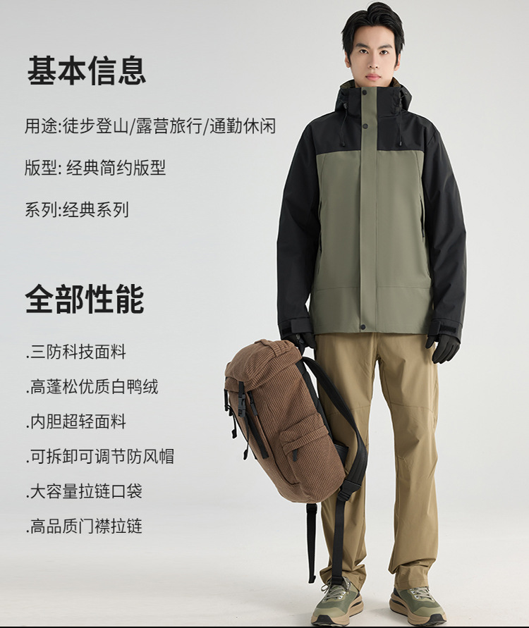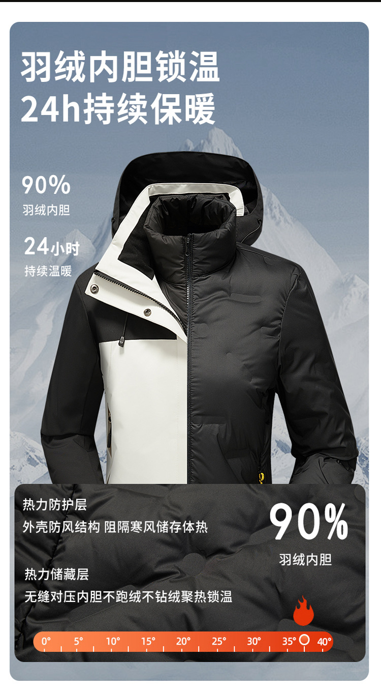 24 가을과 겨울 야외 다운 재킷 방수 따뜻한 3 대 1 이동식 2 피스 하이킹 캠핑 등산 세트스토어 가기