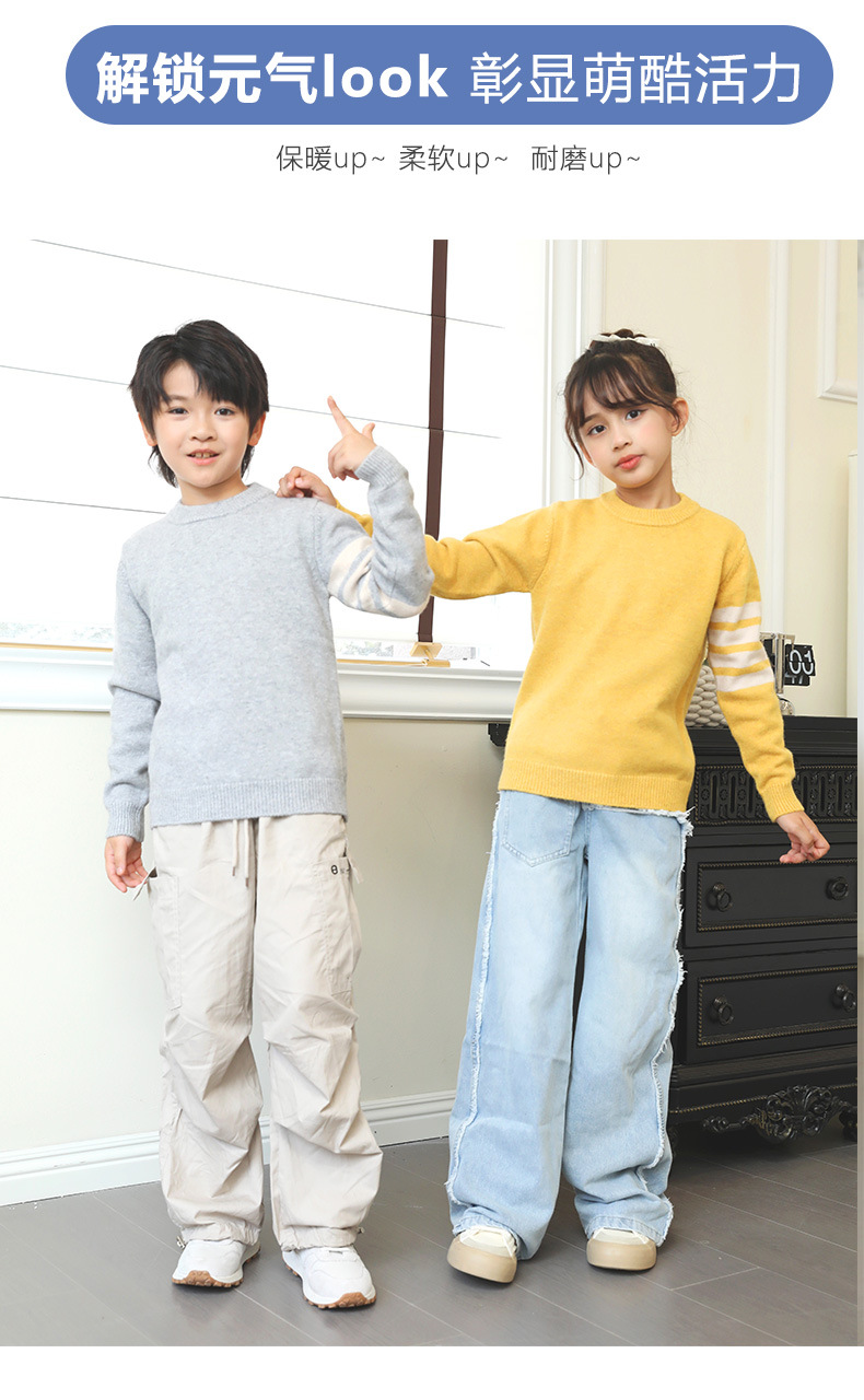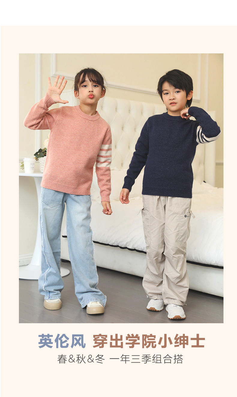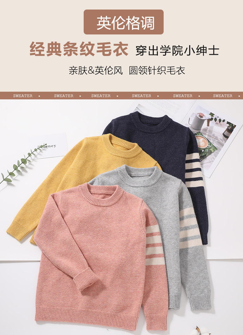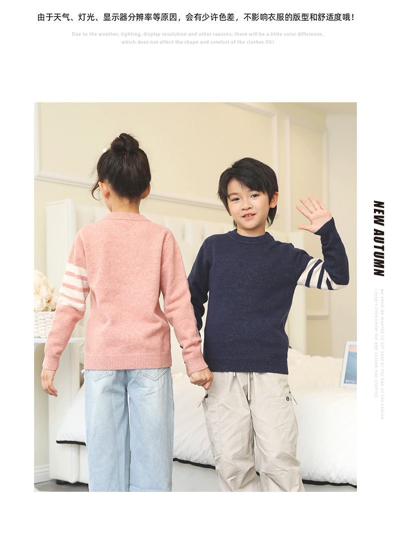 가을 겨울 신상 아동용 스웨터 여아 라운드넥 풀오버 이너웨어 중대형 남아용 니트웨어 아동복 도매